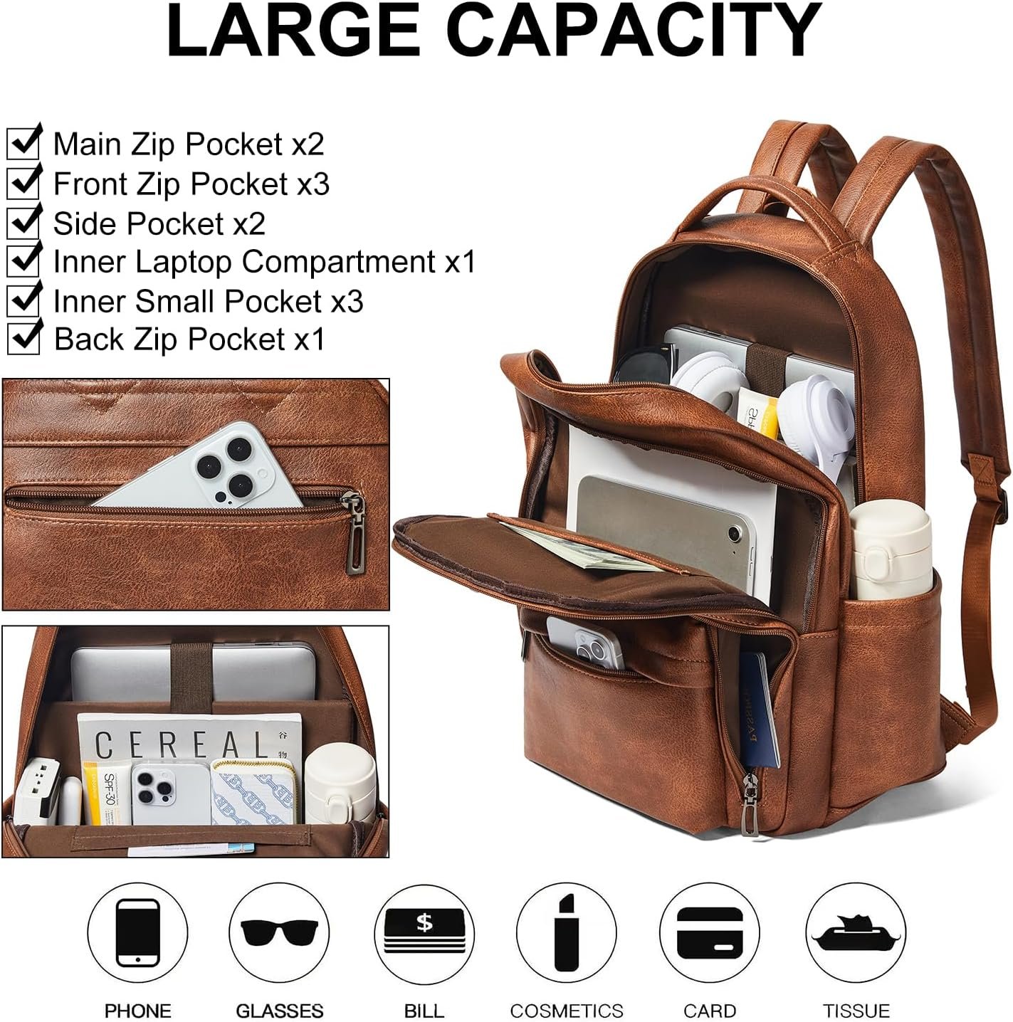 ALL-DAY COMFORT WATERPROOF WORK BACKPACK: Carry light and look sharp with this chic travel backpack. Featuring waterproof lightweight PU leather construction at just 0.9 kg (2 lbs), it offers dependable water resistance and impressive scratch resistance. Perfect for navigating airports, city explorations, or your daily commute – keeping your belongings safe and dry.