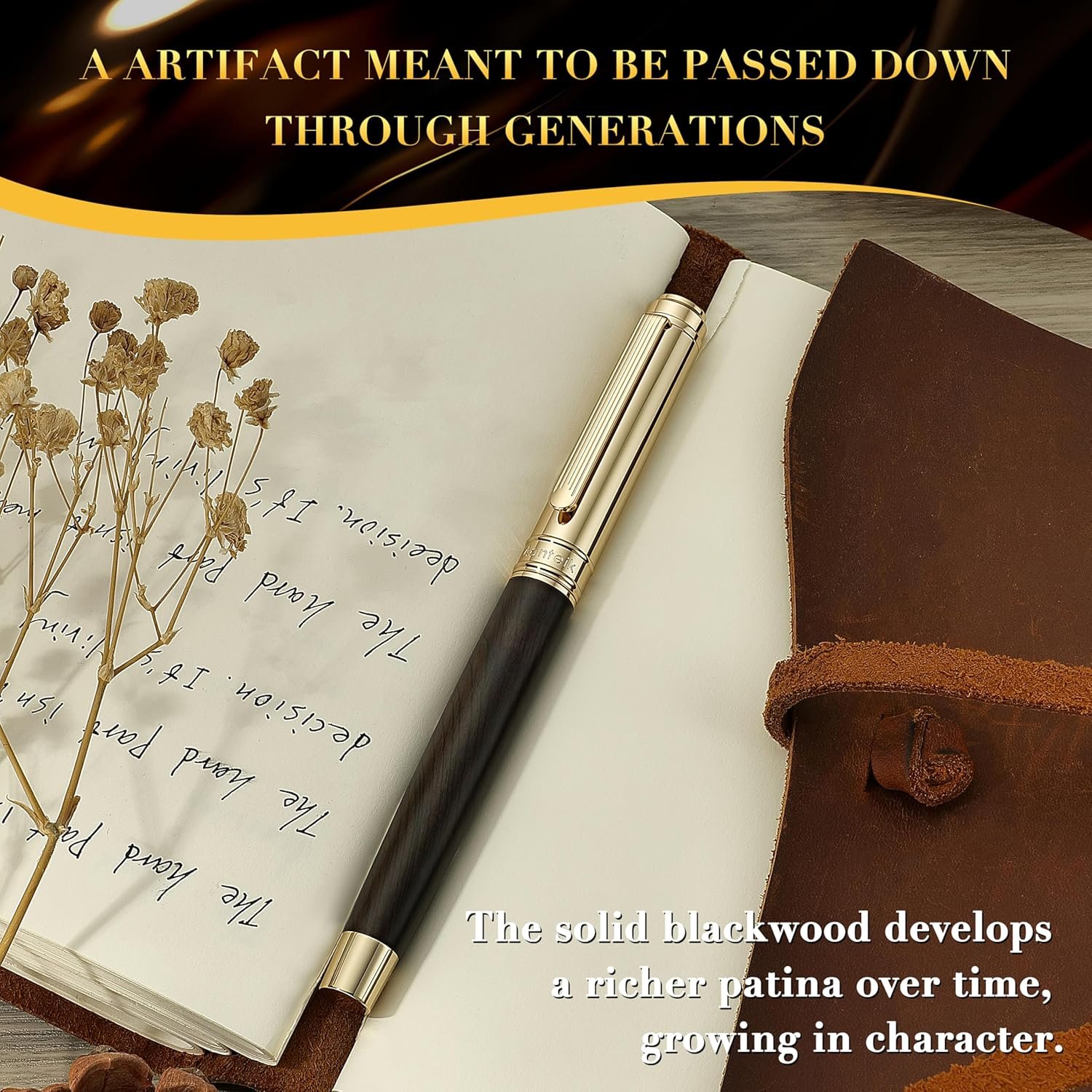 Naturalnwood Body-Embrace the unique warmth and grain of natural blackwood, a prized hardwood known for its rich color and smooth texture. Each pen boasts a one-of-a-kind pattern, offering an organic and sophisticated feel that improves with age.
