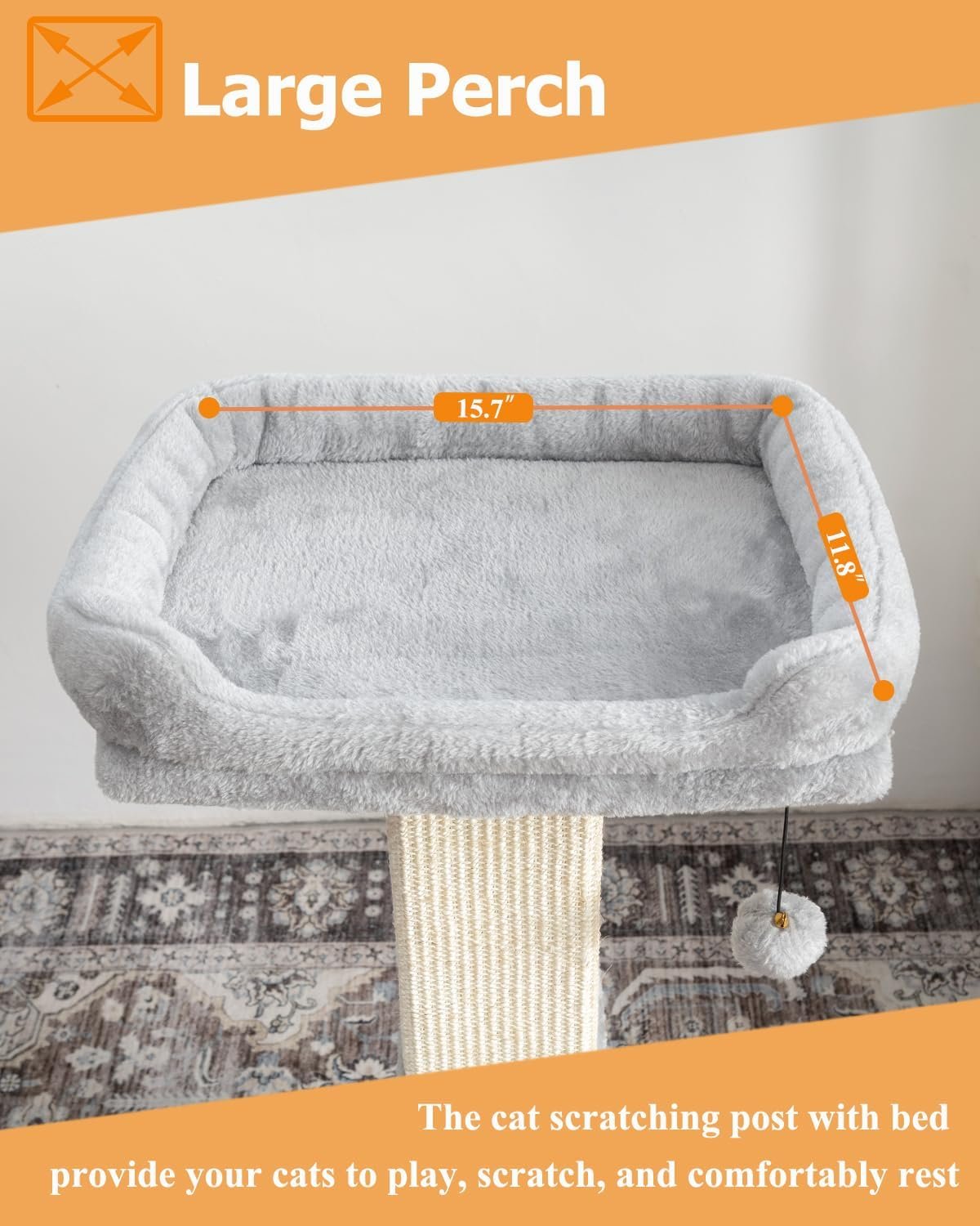 The dimensions of the top plush perch are 15.7″L x 9.8″W.
