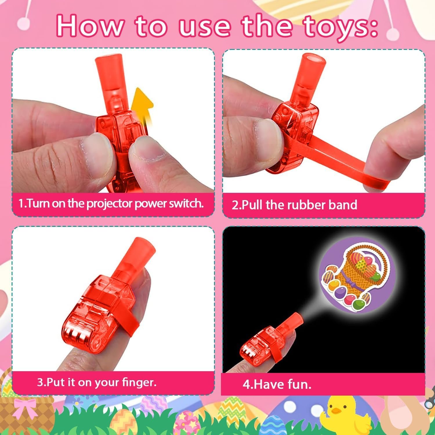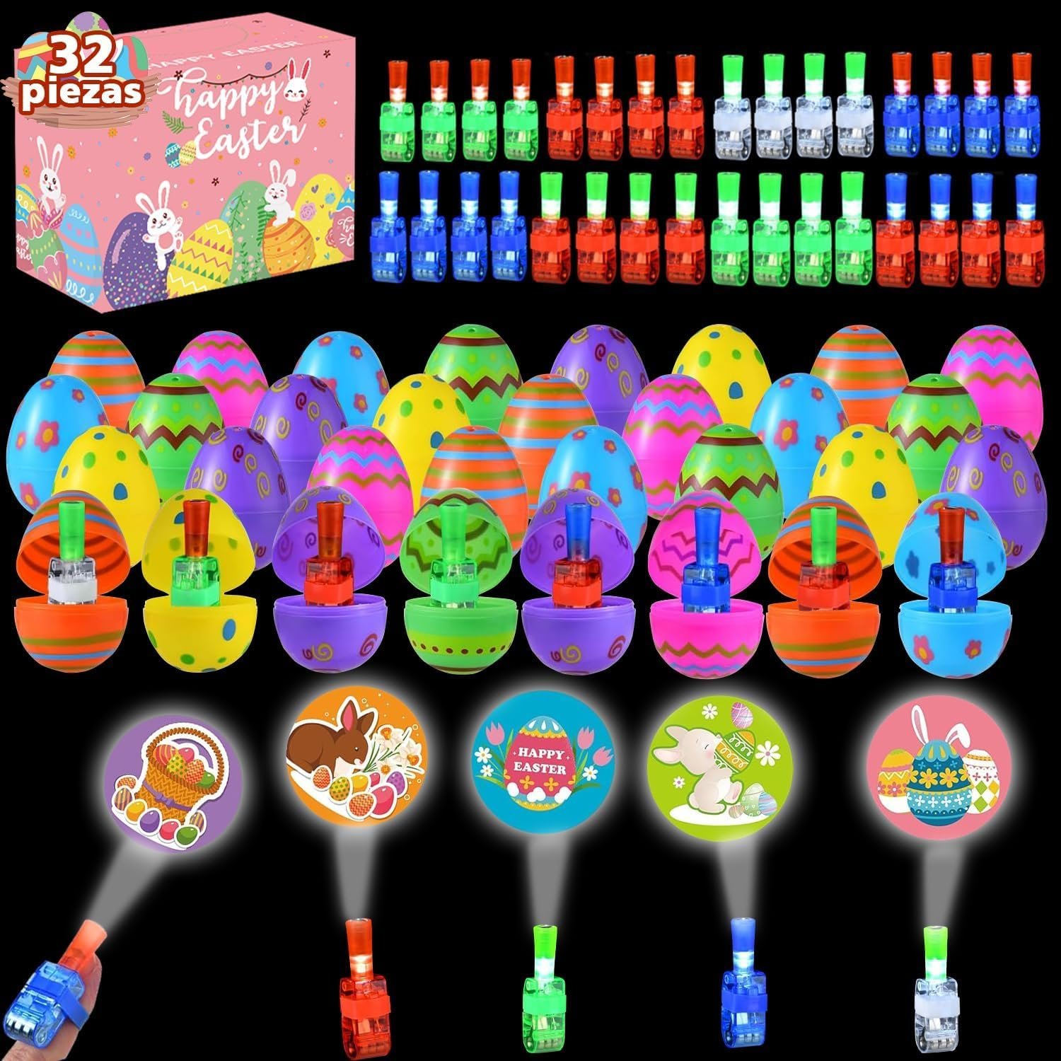 🐰Easter gift: 32 Easter eggs filled with 8 colors with 32 Easter led lights in 8 designs. Place it on your finger and press the switch to project the main Easter image pattern anywhere, overflowing with joy and fun. Enough and full set can meet your decoration and sharing needs, use it as basket filler or egg set item, or as party gifts, gifts and decorations.