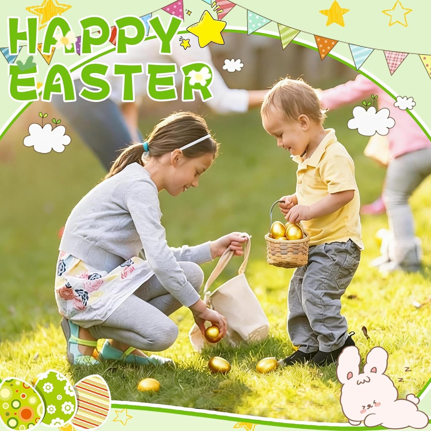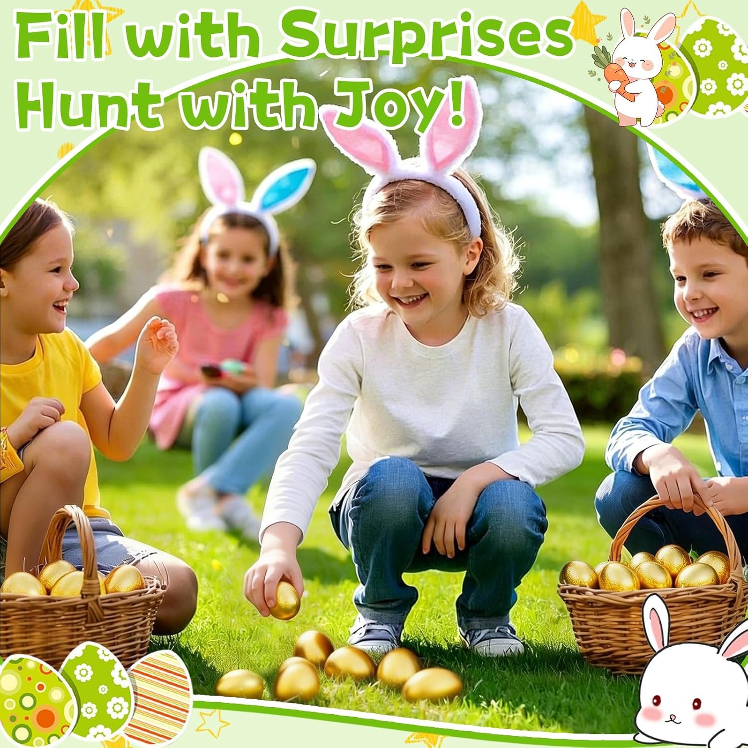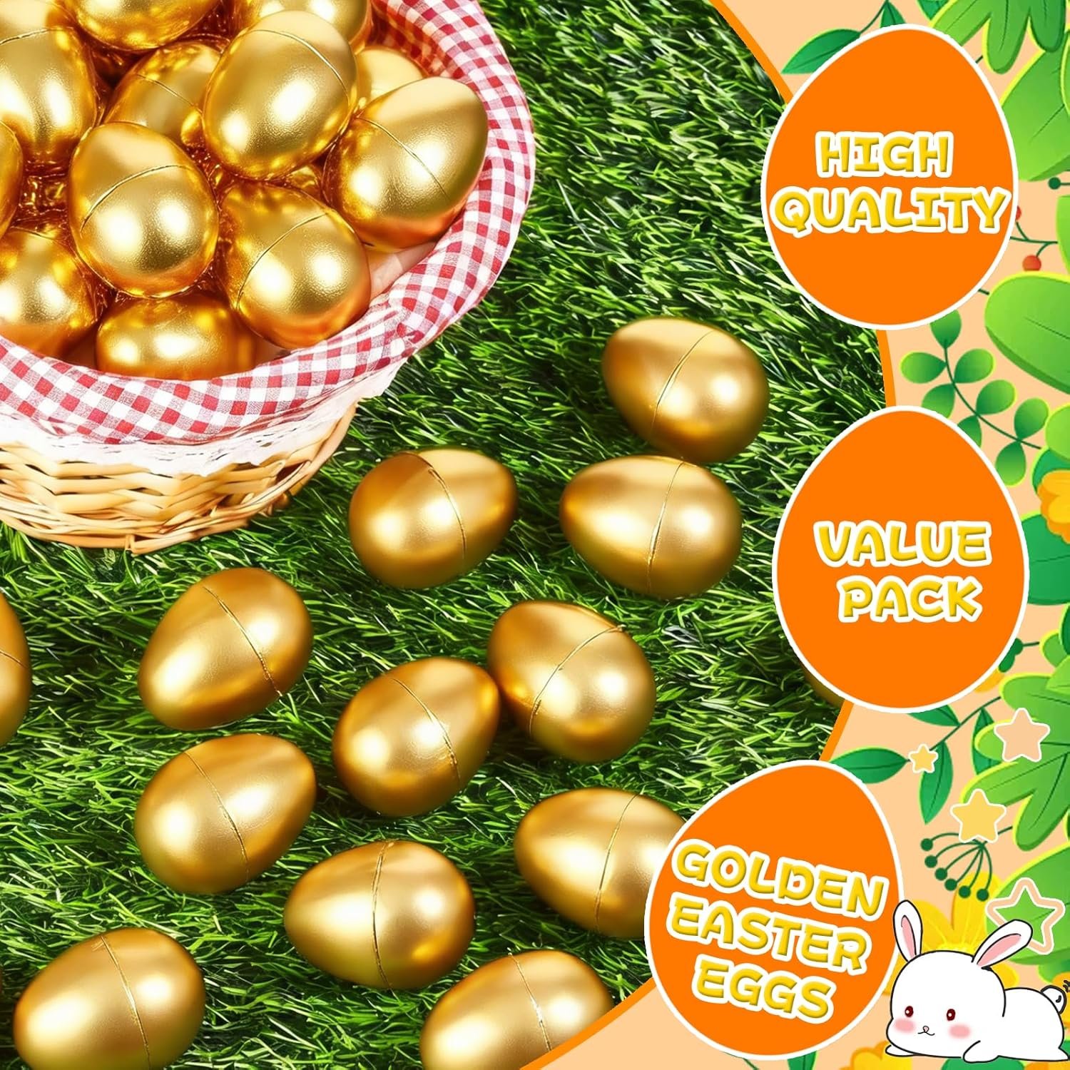 [ Shiny Gold Mini Easter Eggs ] Add a unique sparkle to your Easter festivities with our 2.3-inch Shiny Gold Mini Easter Eggs. This set of 36 miniature eggs is designed for those who enjoy a little extra surprise and fun. Their compact size and luxurious gold finish make them the perfect addition to Easter egg hunts, party favors, or creative gift-giving moments.