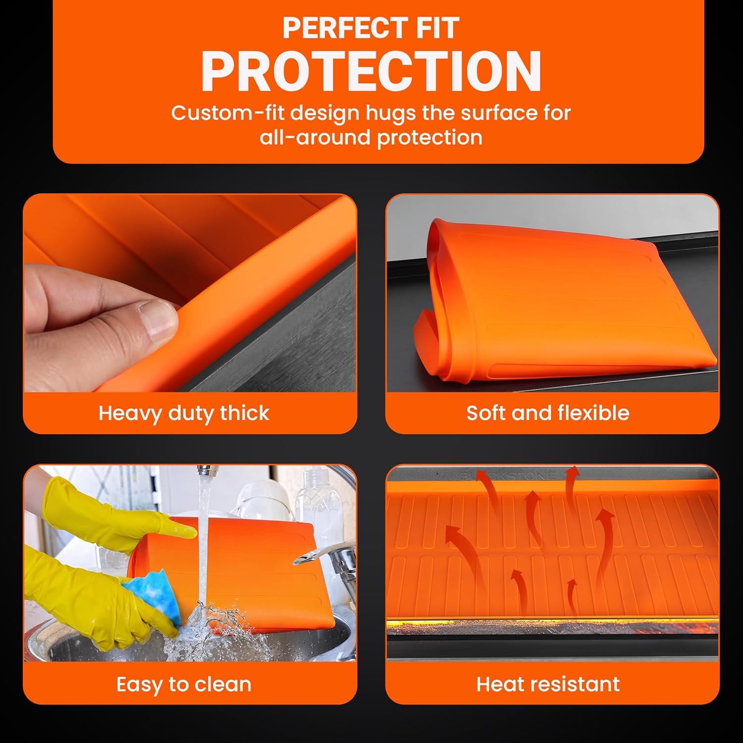 PERFECT FIT – Made For 36” Griddles, Sized at 35.7″ x 21.5″, this silicone griddle cover fits like a glove to your flat top with edge to edge coverage; no shifting, no stress