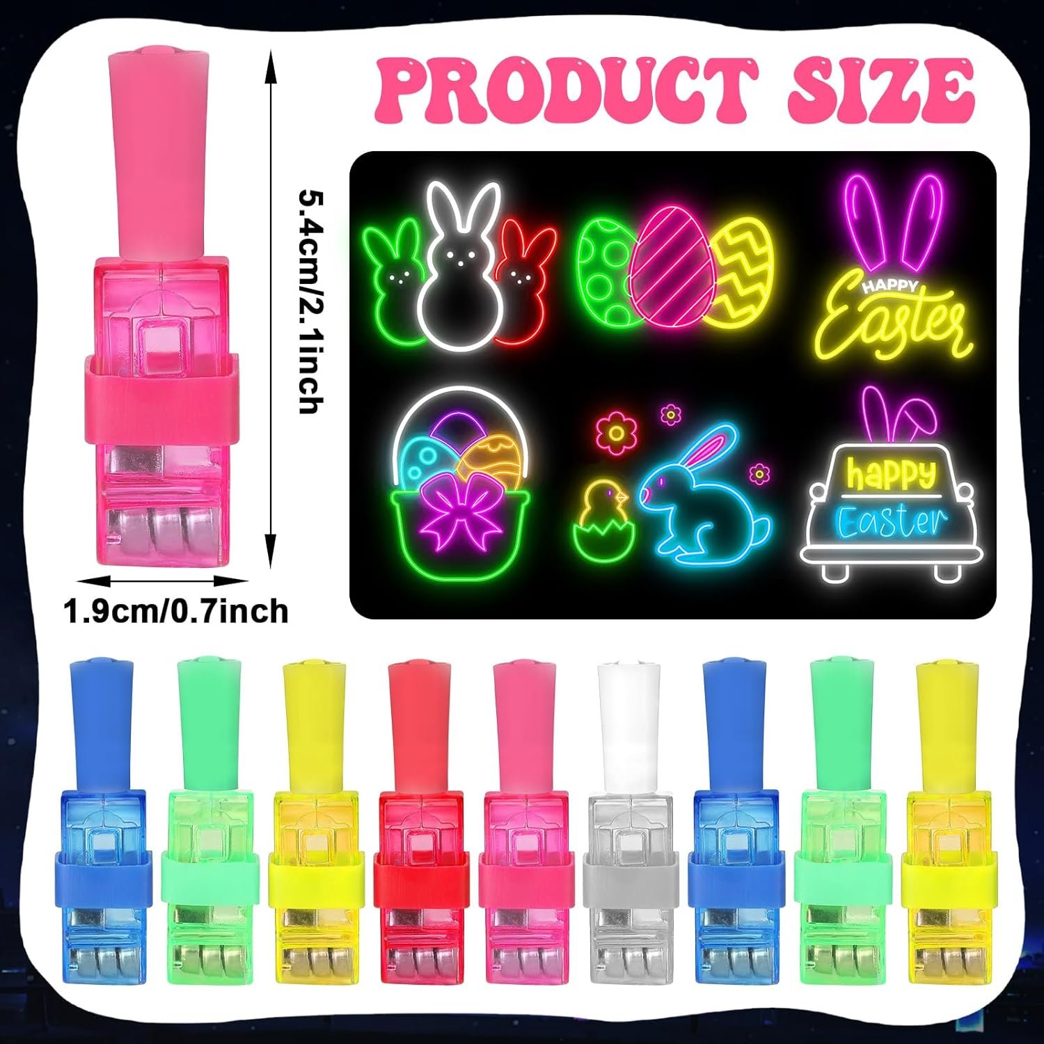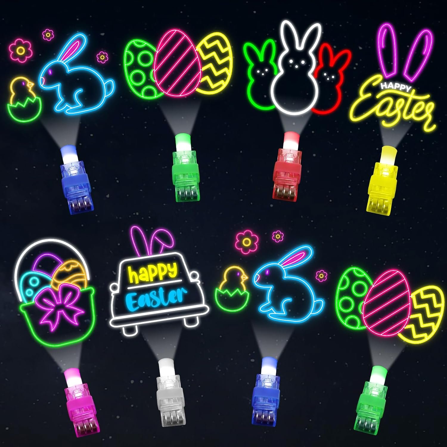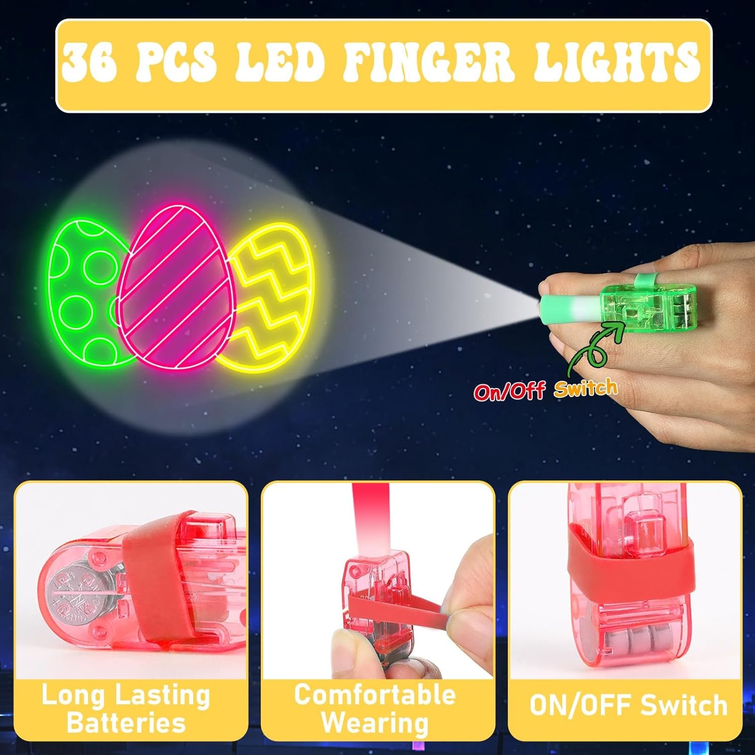 Easter Themed Party Favors : Come with 36 finger lights in 6 designs, each for 6 pcs. Just press the switch to project the Easter bunny egg main picture pattern anywhere. Guests will definitely love these Easter party favors gifts, making a huge hit at the Easter birthday party.