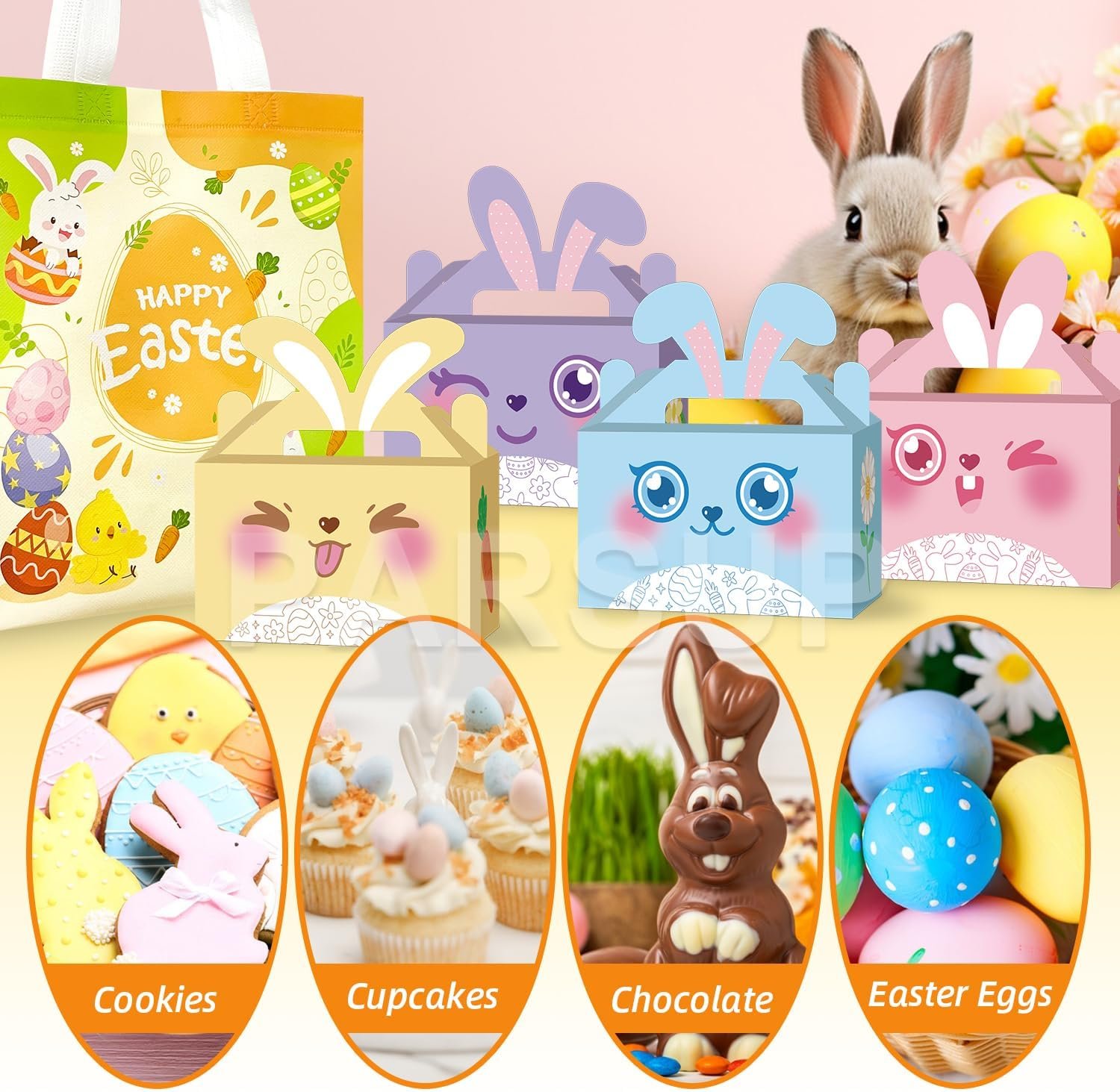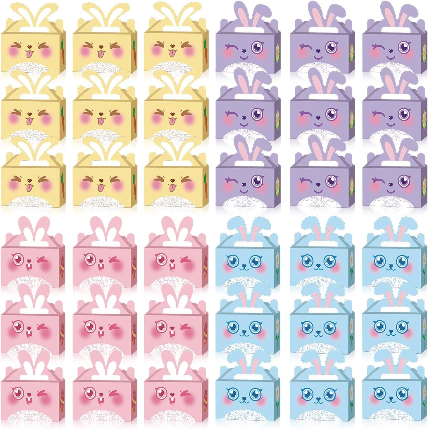 What You Get – Package includes 36 recycled gift boxes in 4 different color bunny patterns and 1pc cute easter theme reusable non woven bag, whether it’s cookies, delicious candy, or scrumptious baked goodies, these party treat boxes are just what you need to dish out the deliciousness in style.