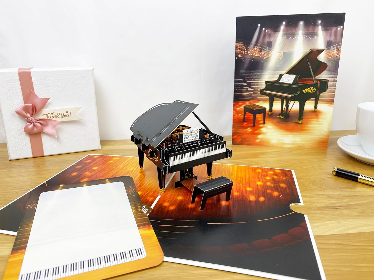 🎶 Grand Piano Pop-Up Design – Opens to reveal a detailed 3D piano, evoking the beauty and sophistication of classical music and performance.