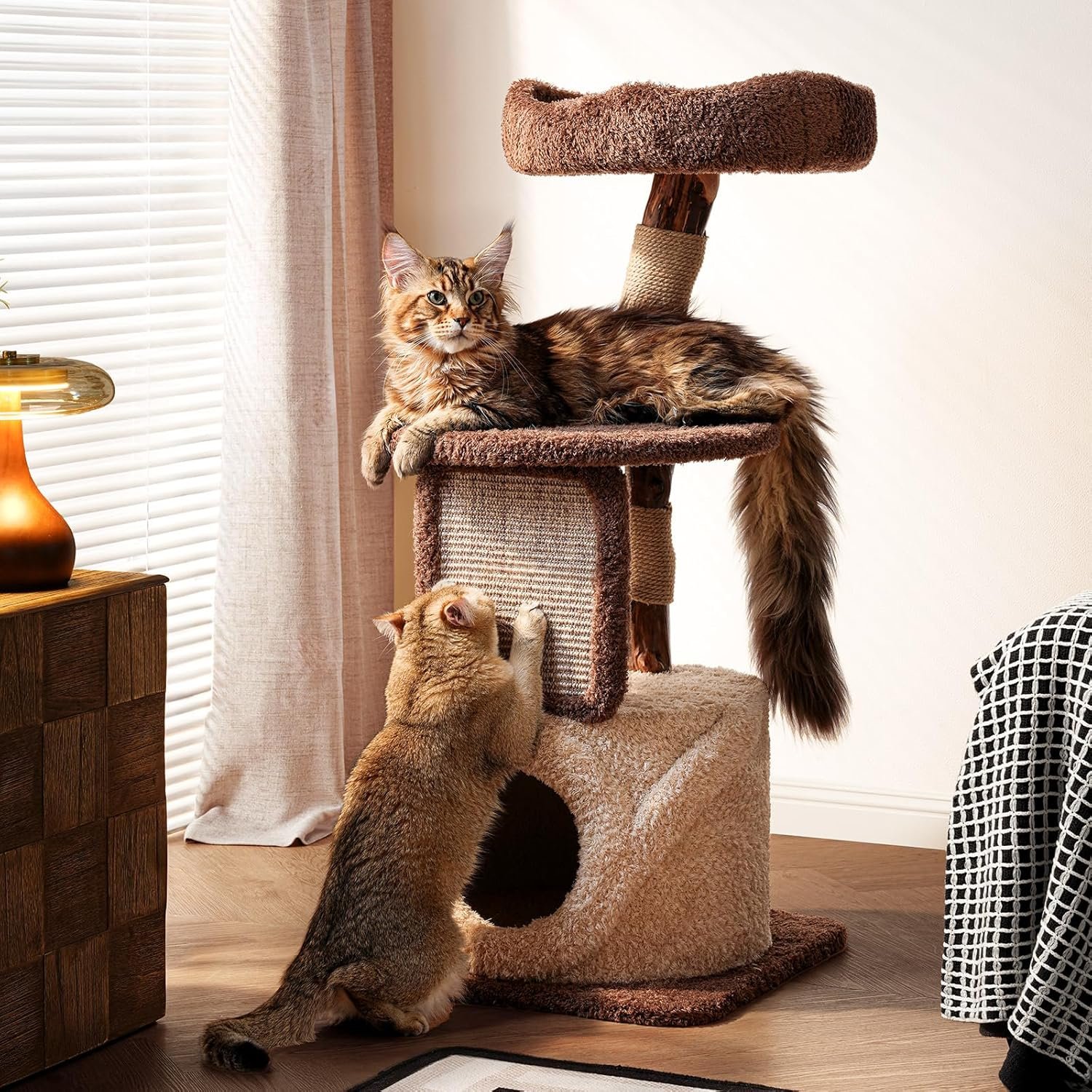 MODERN SOLID WOOD DESIGN – Crafted from real solid wood for unmatched strength and style, this modern cat tree blends seamlessly with your home décor while offering a safe, natural play space for cats.