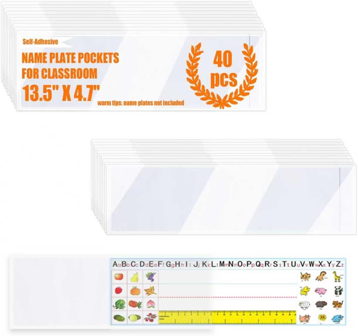 40 PCS Nameplate Pocket Adhesive Desk Nameplates Name Tag Pocket 13.5 x 4.7 Inch