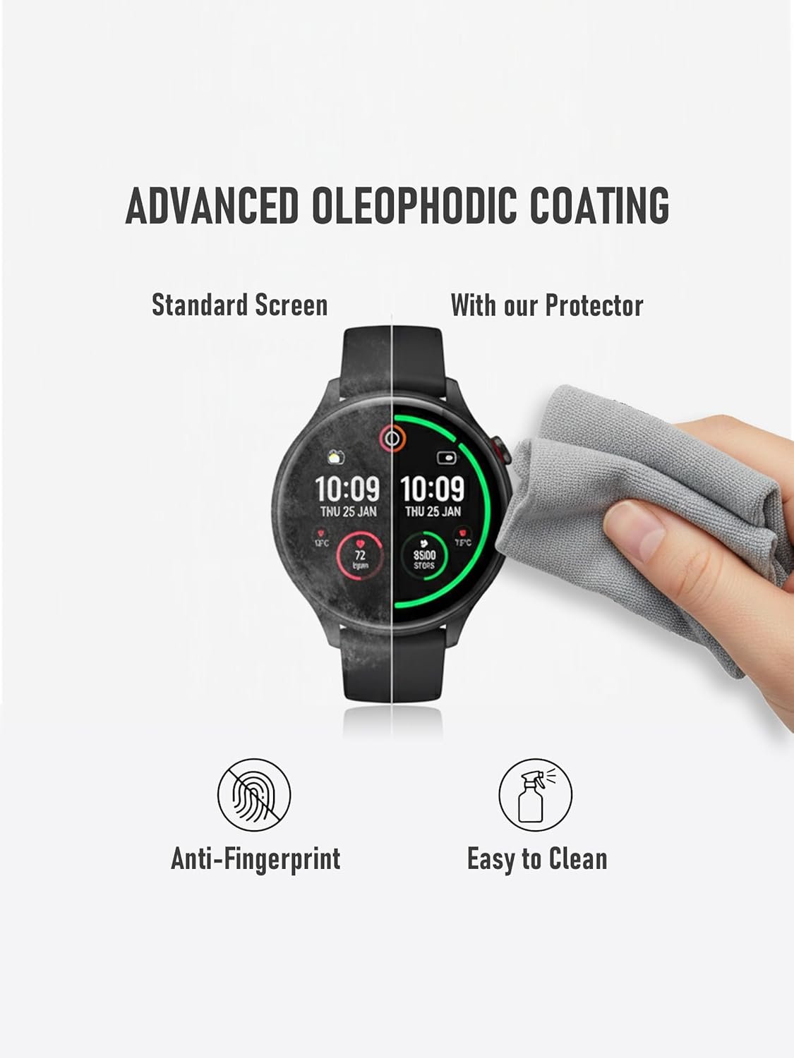 Ultra Clear Coating: 99.99% high-definition clear hydrophobic and oleophobic screen coating protects against sweat and oil residue.