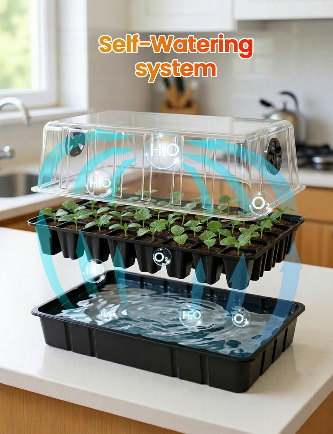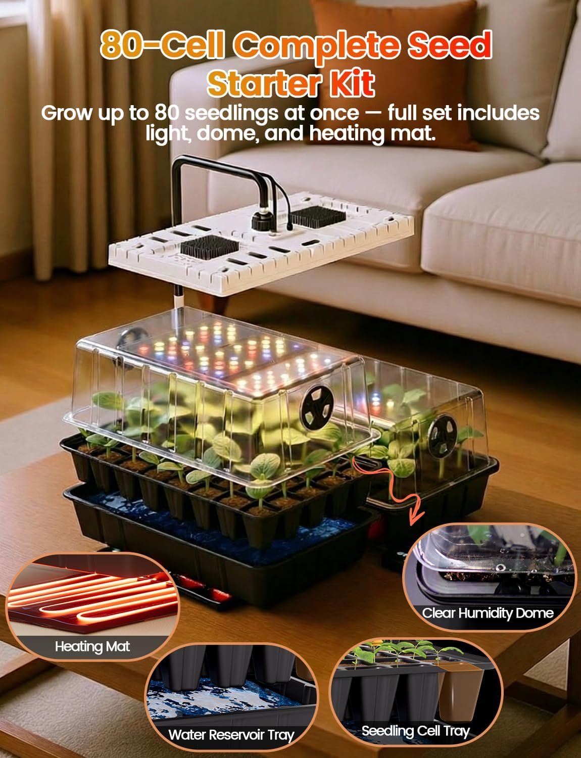 Complete 80-Cell System:This 80-cell seed starter tray system includes two 40-cell trays, water reservoir bases, and a clear humidity dome, combining the functions of a germination kit. Bigger capacity than 60 or 72-cell seed starter trays. Ideal for indoor seed starting, microgreens growing trays, sprouting trays, herbs, vegetables, and hydroponic seed starter kits.