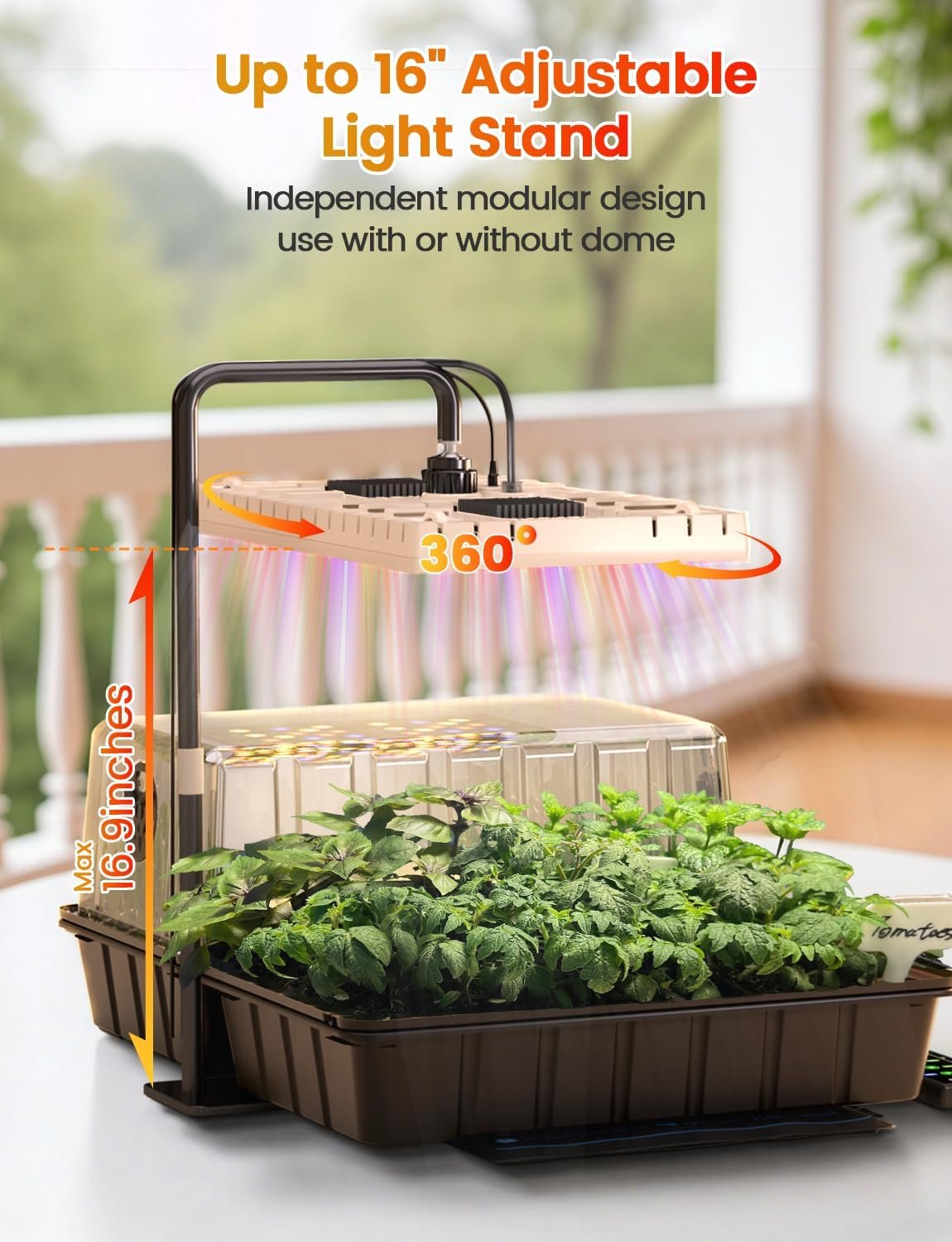 Grows as Plants Grow:Independent adjustable 16″ light stand keeps lighting consistent even after removing the humidity dome, helping reduce excess moisture accumulation. Fits nursery pots with humidity dome, aeroponic cloner, reusable seed starter tray, and other seedling starter trays.