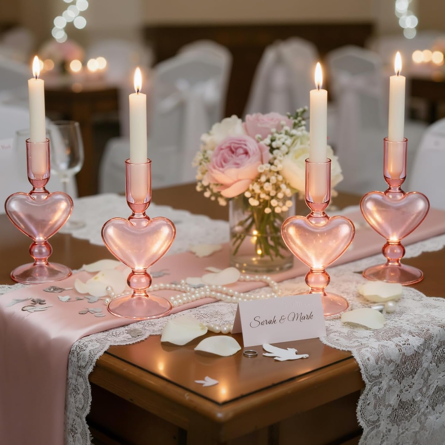 Package includes: 4× heart candlestick