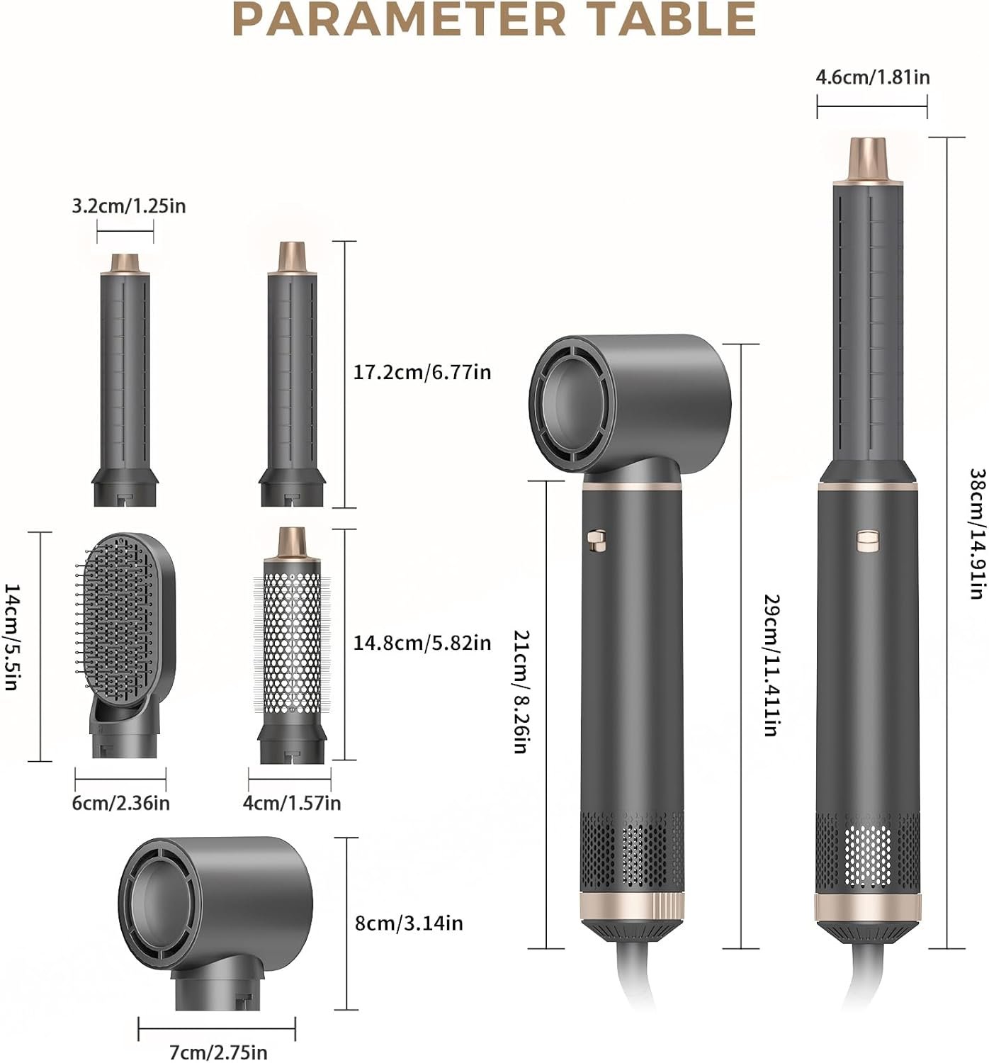 Versatile Styling Tool: This 5 in 1 hair styler curler that combines a hot air brush, curling wand, straightening brush, and volumizing brush. Can meet various hairstyle needs at home, including drying and curling hair needs