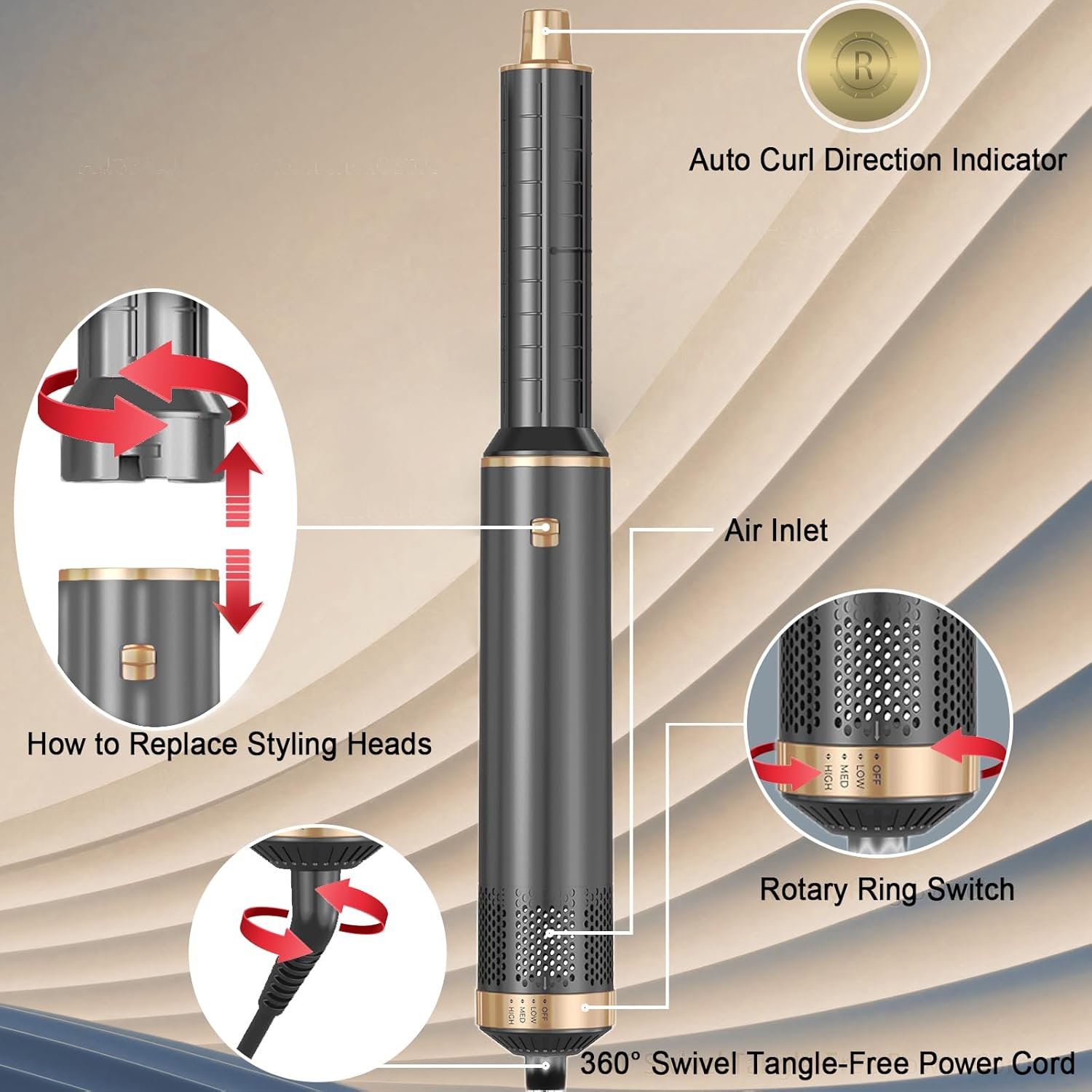Having a Powerful Motor – Equipped with a powerful 800W motor, this 5 in 1 air styler generates strong yet gentle airflow. used to enhance drying and curling ability