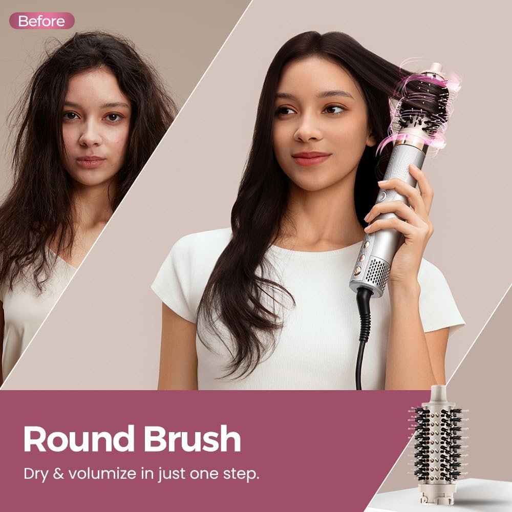User-Centric Design & Safety Features. The <80dB quiet operation won’t disturb kids/roommates, Lecomely hair dryer brush is also more friendly to people who are sensitive to sound. Comes with an ALCI safety plug, a 1.8m 360-degree swivel cord, and a detachable air filter for easy cleaning, ensuring a safe and convenient styling experience for everyone in the family