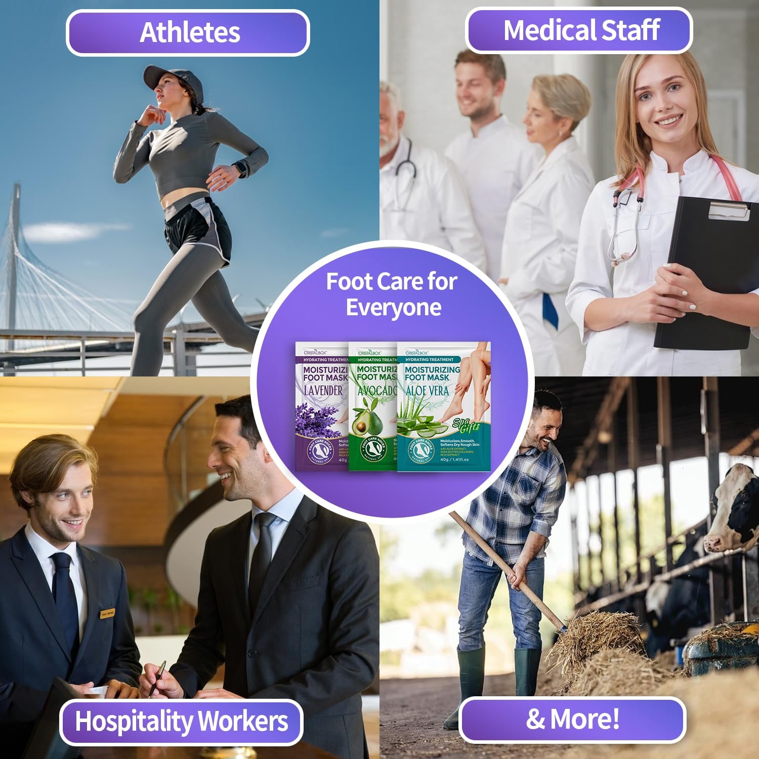 Hydrating Foot Mask for Foot Care Spa Gifts:Natural plant ingredients,shea butter,aloe,milk extract,collagen. This rich, deeply hydrating and moisturizing foot mask leaves feet smooth and rejuvenated. Leaves your feet hydrated and comfortable throughout the day
