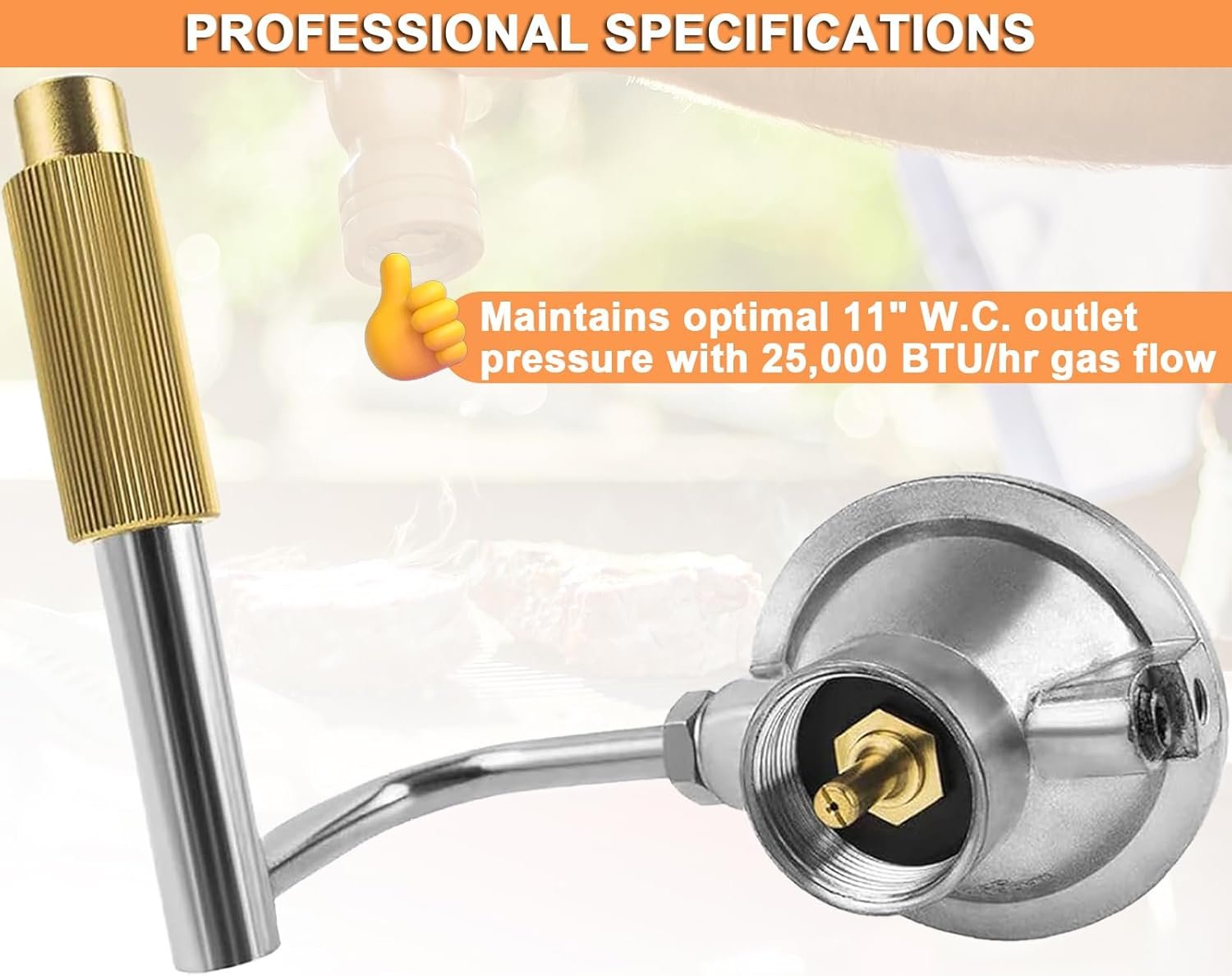 【Professional Specifications】Maintains optimal 11″ W.C. outlet pressure with 25,000 BTU/hr gas flow. Certified low-pressure propane regulator replacement for Coleman camping stove parts, ensuring safe fuel delivery for outdoor cooking.