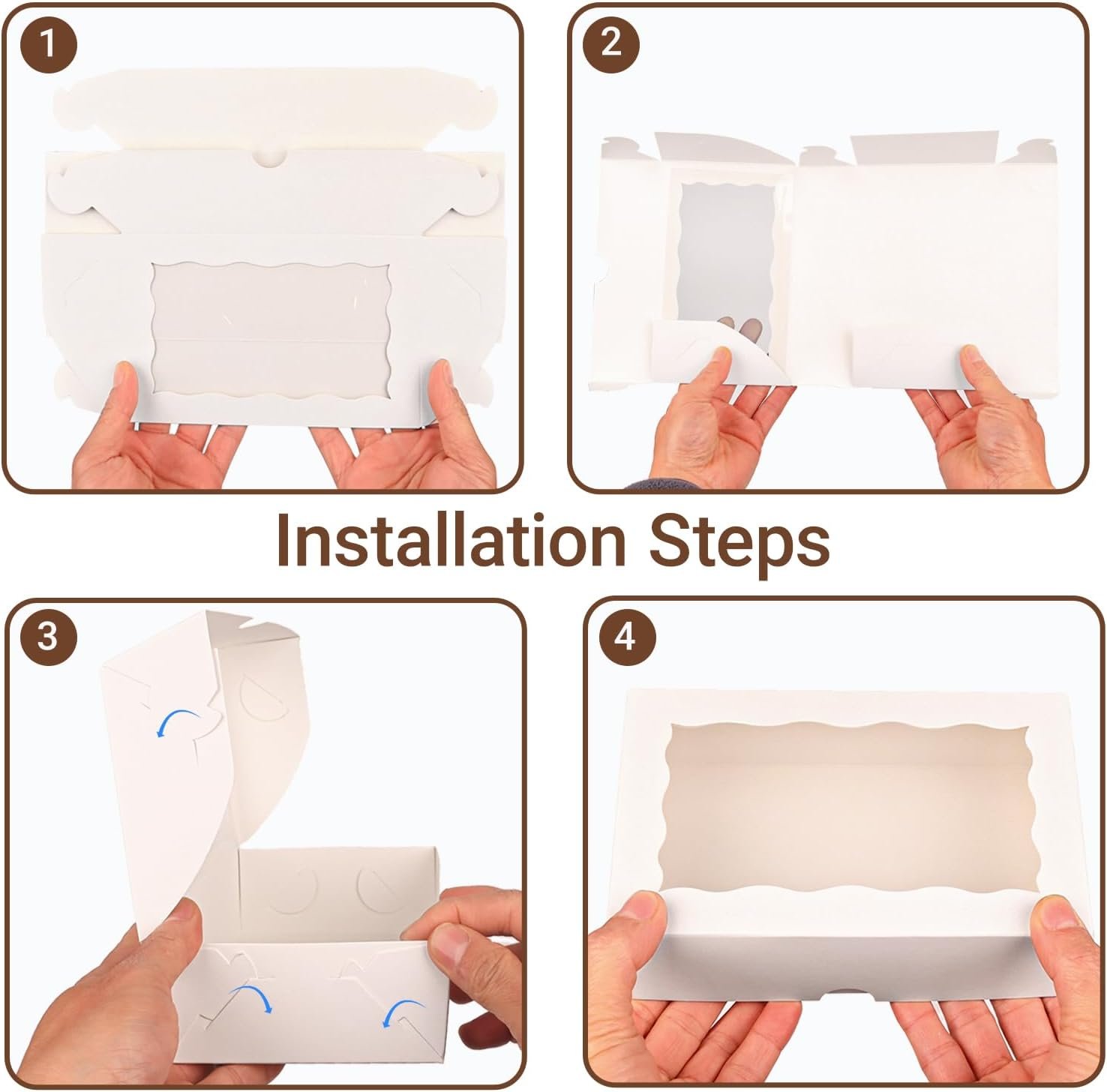 【Easy to Store】:This bakery cookies box comes flat, you need essamle by yourself,ensuring that it’s easy to store and takes up less space