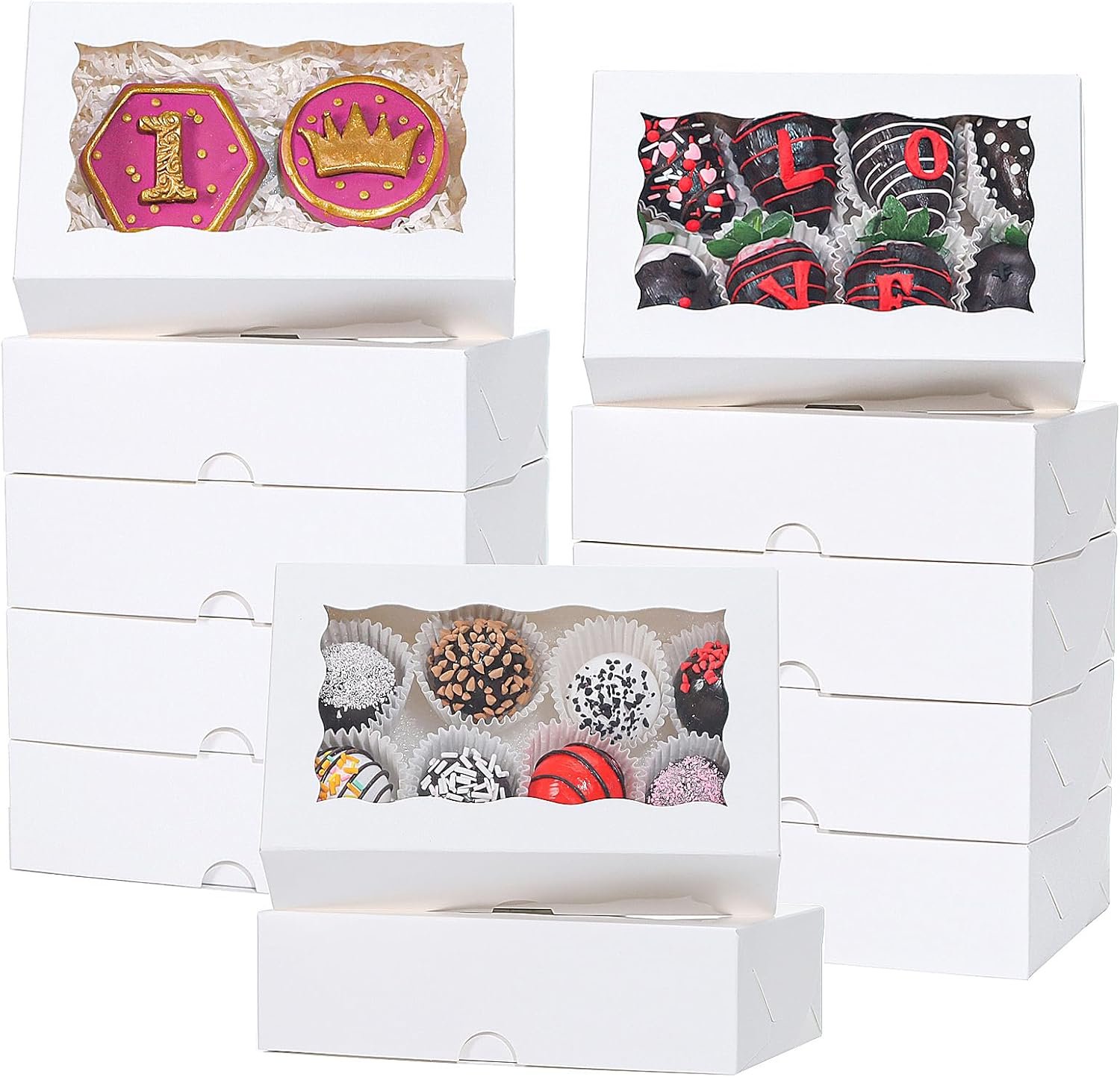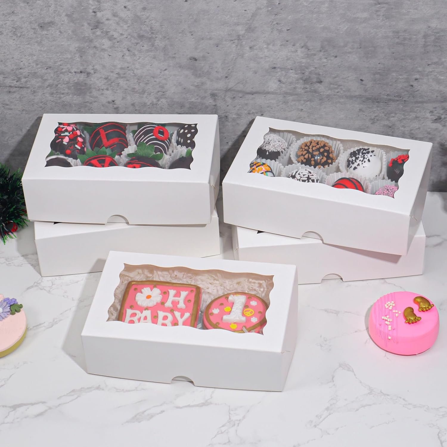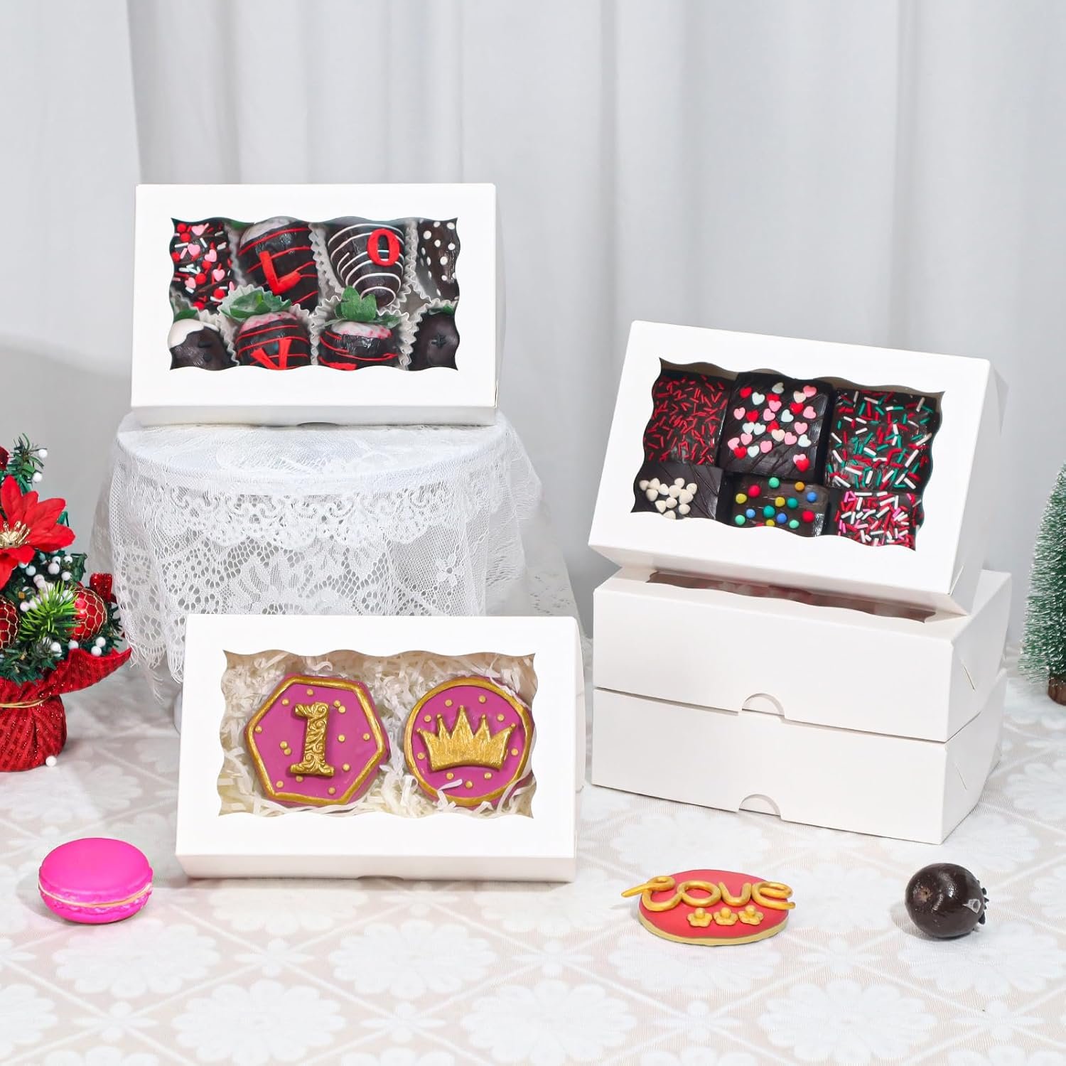 【Window】:Bakery boxes with clear window,perfect for showing off your delicious food,such as cookies strawberries it looks more pretty and elegant
