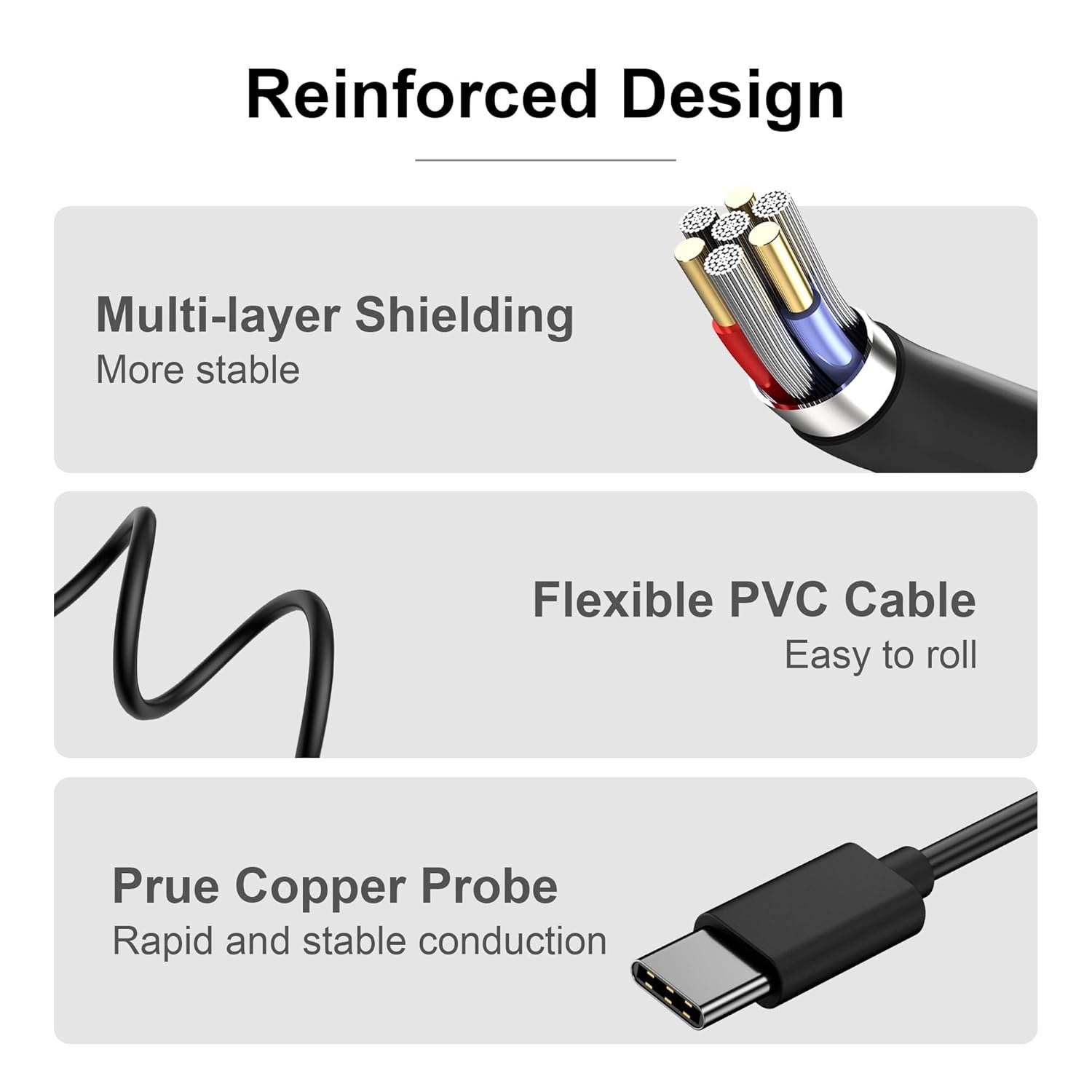 The USB-C charger is made with upgraded high-performance materials and multiple charging protections that can withstand thousands of bends and have a long life.