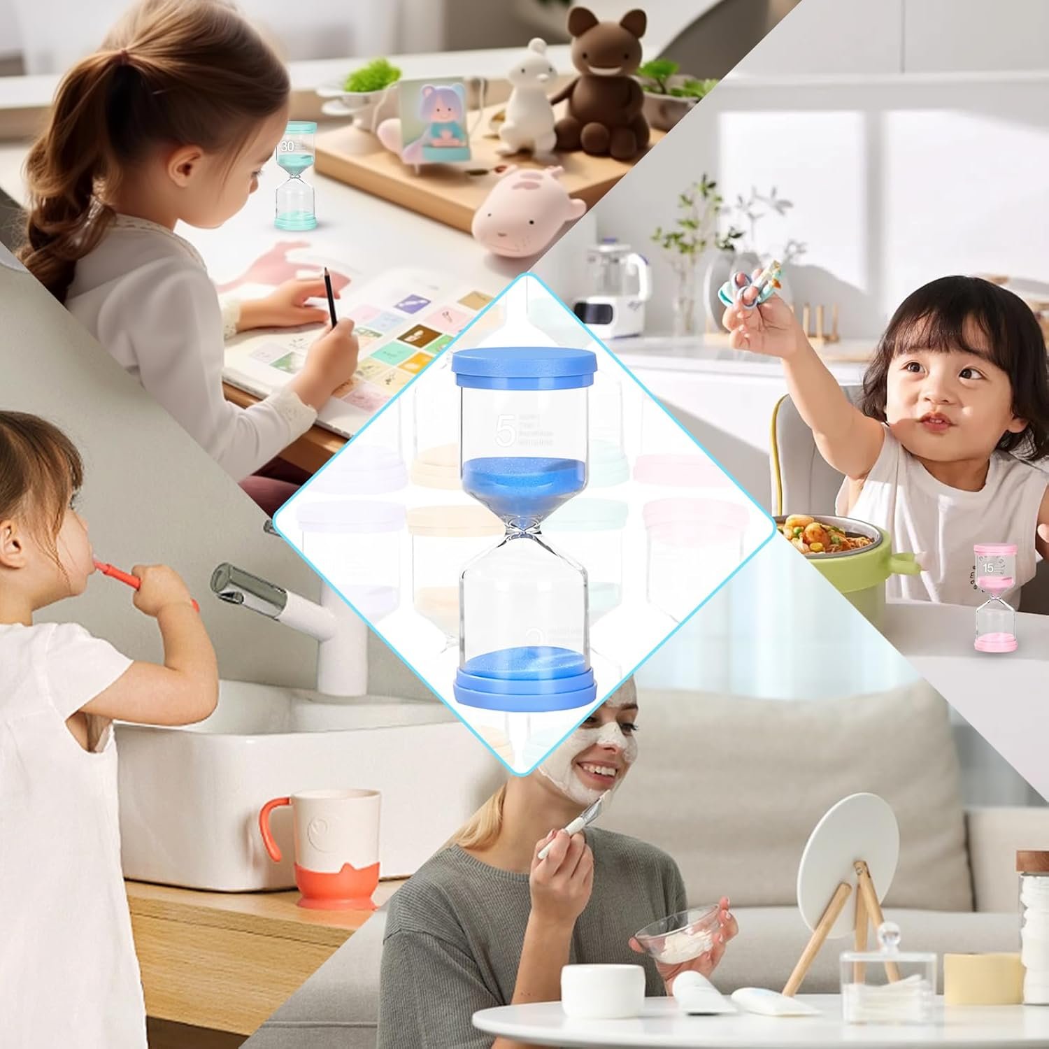 【Sand Timer Set】6pcs hourglass combination includes five different time settings (3 minutes, 5 minutes, 10 minutes, 15 minutes, 30 minutes) for macaron time hourglass, which can meet various purposes in daily life and make time management more flexible and efficient.