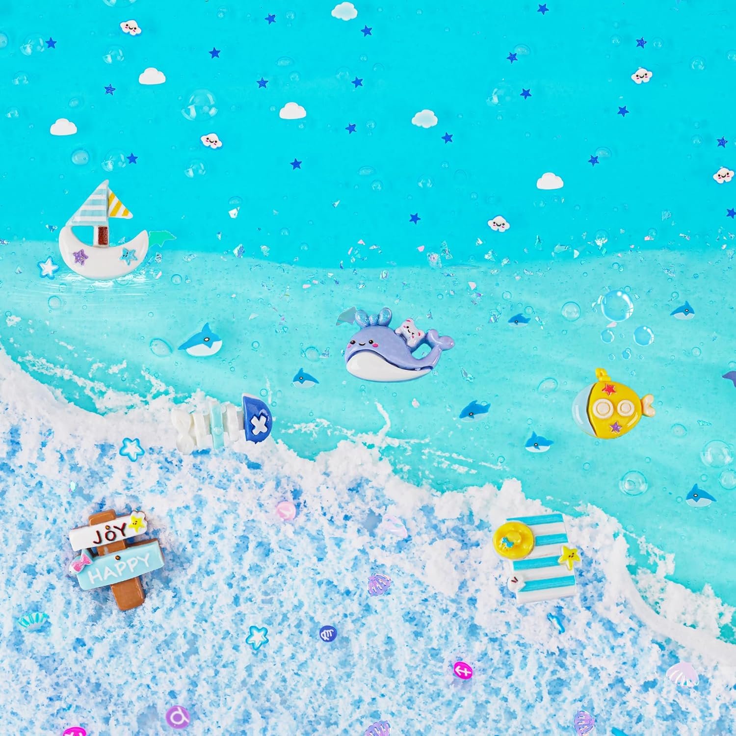 🐋【Gradual Blue & Various Add-ins】This blue ocean slime kit is ocean themed, graduating from white to dark blue and contains 8 slime add-ins. Whether you want to make crunchy slime, fluffy snowflake slime or smooth butter slime, paired with a variety of adorable slime charms to create your own one-of-a-kind slime creations, this kids slime has everything you need.