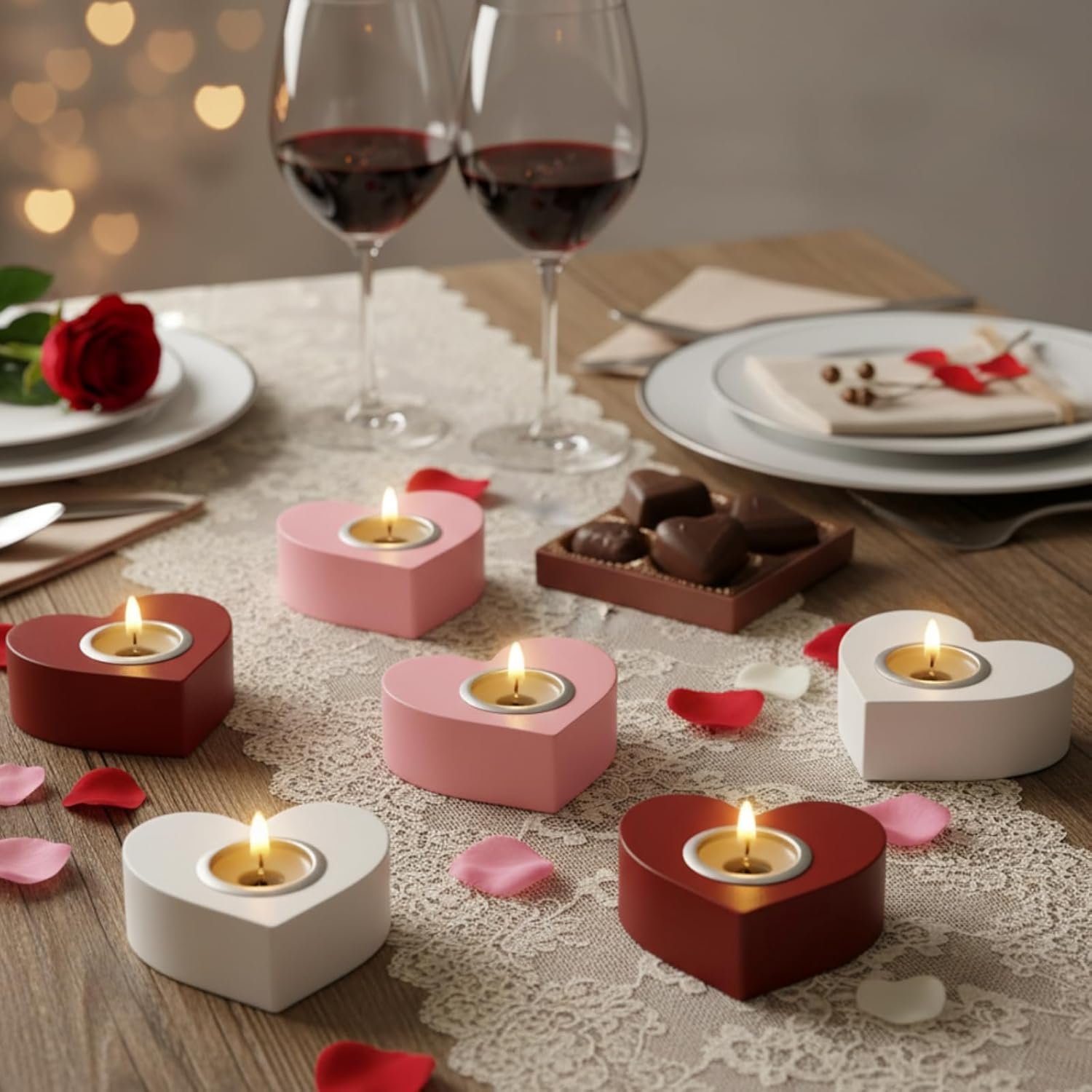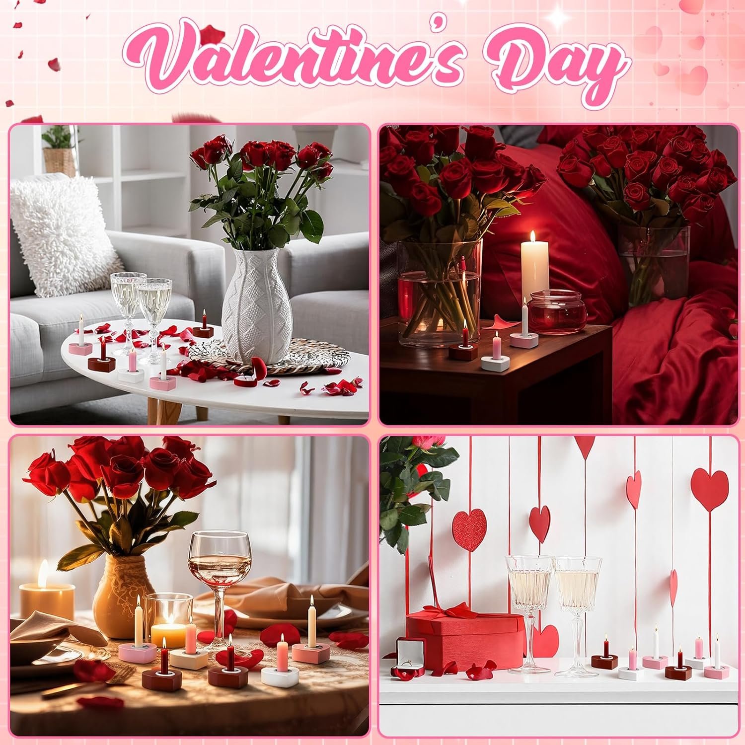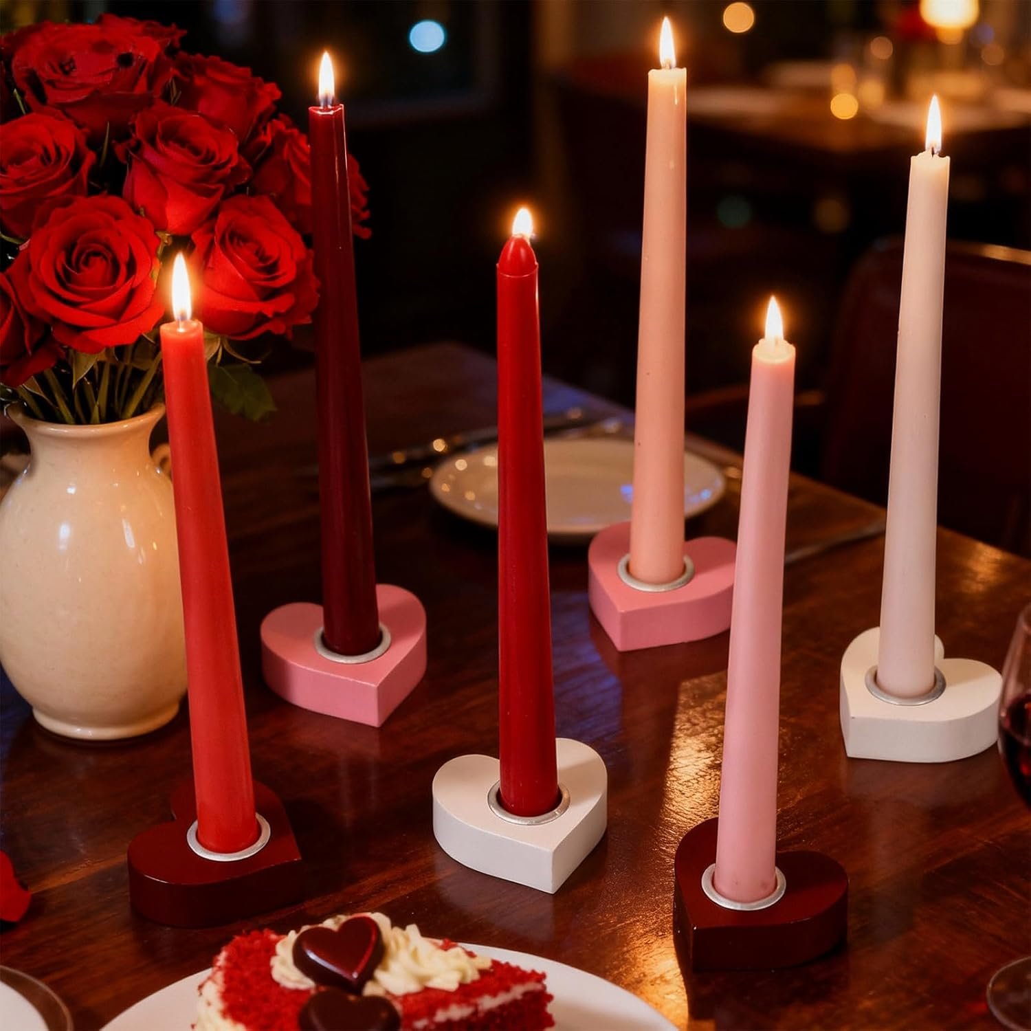 6 pcs heart Candlestick Holders: our wooden heart taper candles holders come in a set of 6, available in red, pink, and white; Perfect for tabletops, shelves, or centerpieces, add a romantic touch to your home with these heart taper candle holder