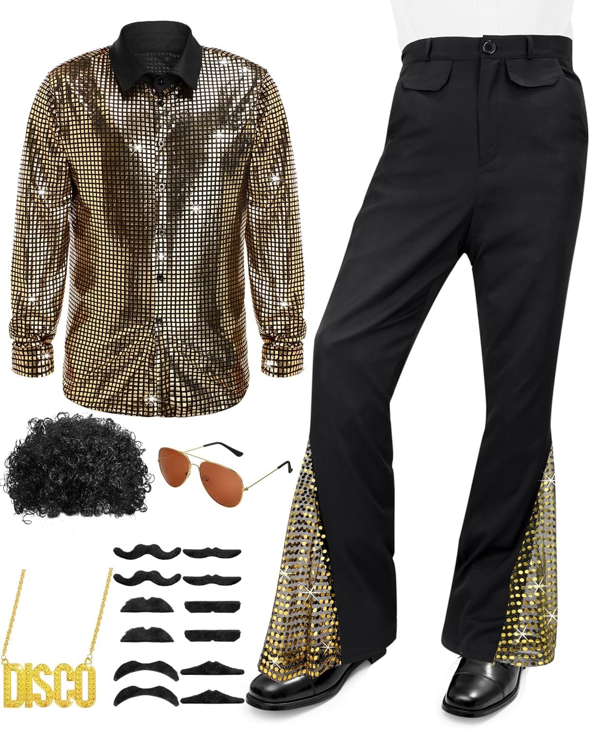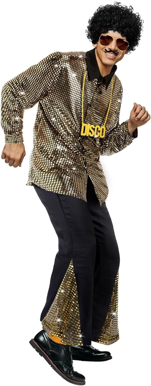 Customers find the 70s disco outfit looks authentic, with the sparkly shirt and pants effectively capturing the disco vibe. The costume receives positive feedback for its quality, comfort, and value for money, and customers enjoy wearing it, with one mentioning it was particularly funny at a wedding dance. The fit and size receive mixed reviews – while some find it true to size, others note the pants run a little small. Additionally, some customers report issues with hair loss, with one mentioning the wig’s hair coming off when fluffing.