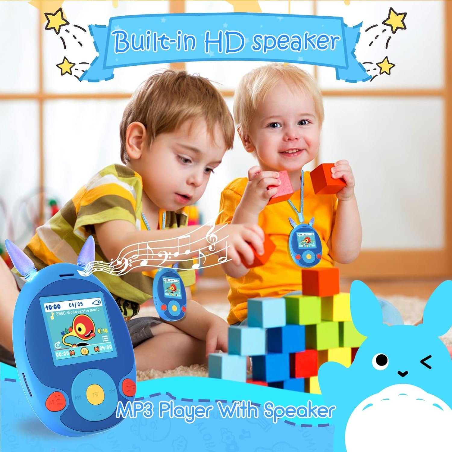 ♪【Kid-Friendly Design & Kids Proof Durability】This MP3 player for kids features a colorful and playful design that appeals to toddler, making it fun and engaging to use. It has 7 lovely physical buttons and light ears. The ears can flicker with blue light(three LED light modes). Constructed with durable materials, this MP3 player is built to withstand the rough and tumble of everyday play, ensuring it remains functional and intact even in the hands of active youngsters.