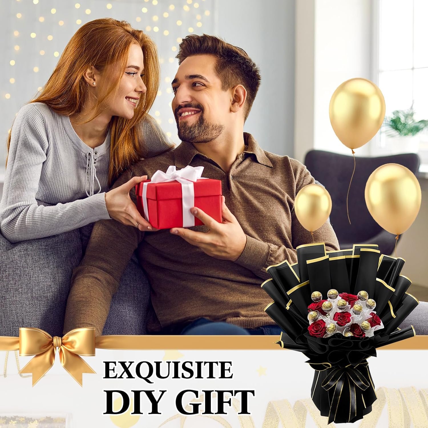 Size Details: the diameter of our chocolate bouquet plastic balls is about 1.57 inches/ 4 cm; The sticks are 11.81 inches/ 30 cm long; The colored ribbon is 24.06 yd/ 22 m long; The size of the wrapping paper is about 22.83 x 22.83 inches/ 58 x 58 cm