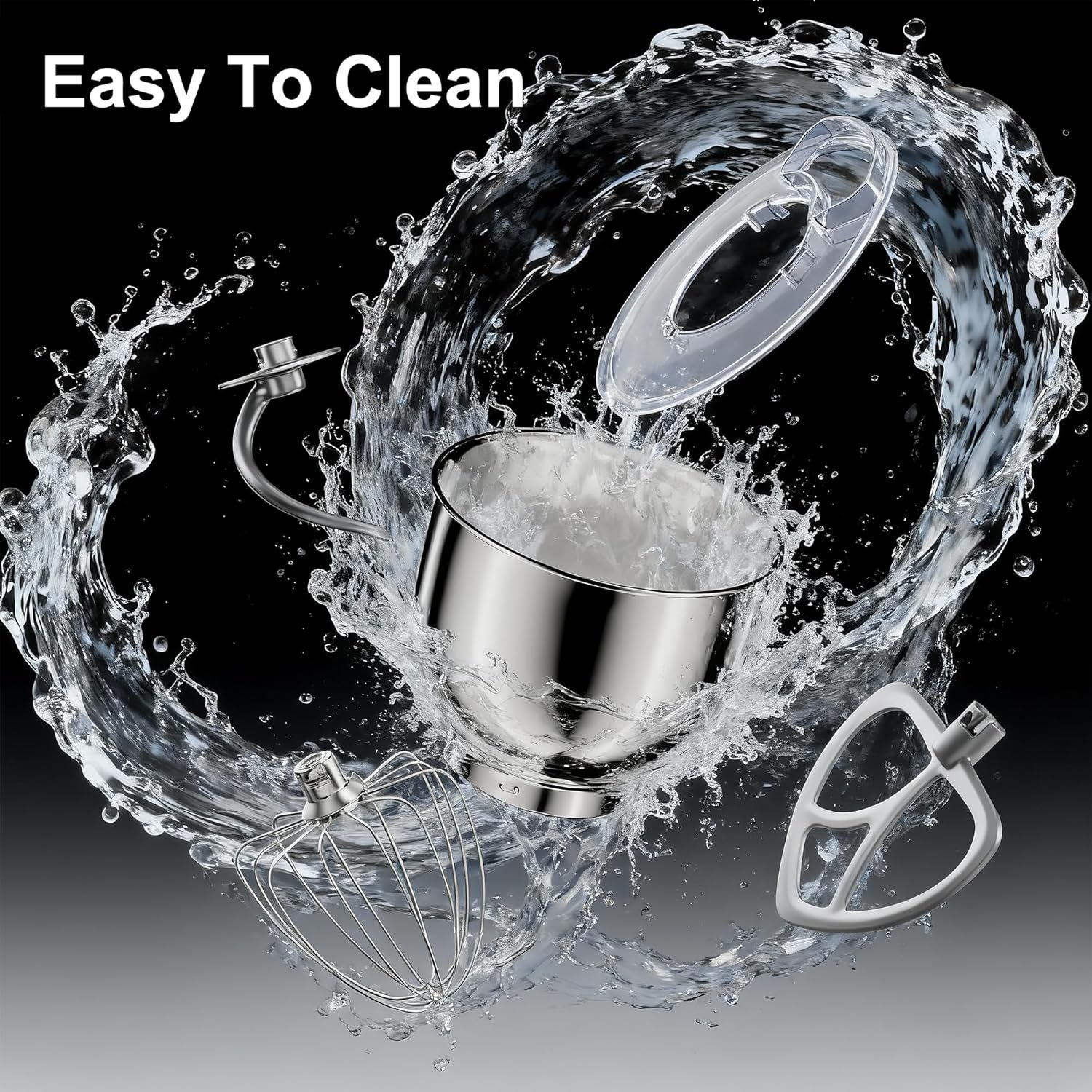 【8.45 Quart Large Capacity Bowl with a Handle and Tilt Head Design】8.45 QT durable stainless steel bowl with a handle. The tilt-head design mixer allows access to install or uninstall bowl and accessories easily. The large stainless steel bowl is family-size portions and and easy meal prep, and is dishwasher safe for quick cleanup.