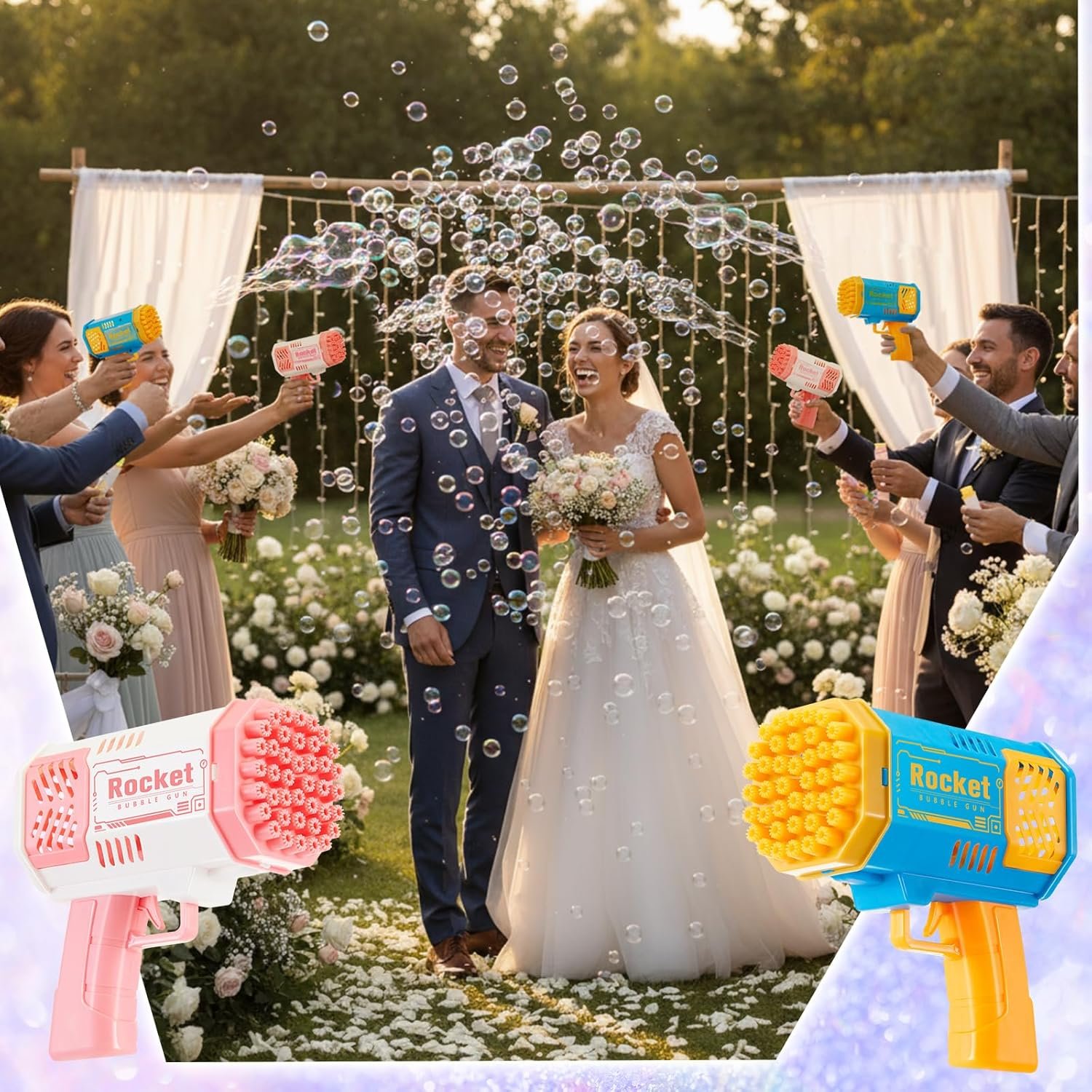 Unleash the Bubbles: our bubble machine has been upgraded with a 40-hole design, producing thousands of bubbles per minute; Immerse yourself in a bubble feast, enjoying a colorful and mesmerizing display of bubbles for endless fun; Experience the thrill of bubble bursting with our bubble gun