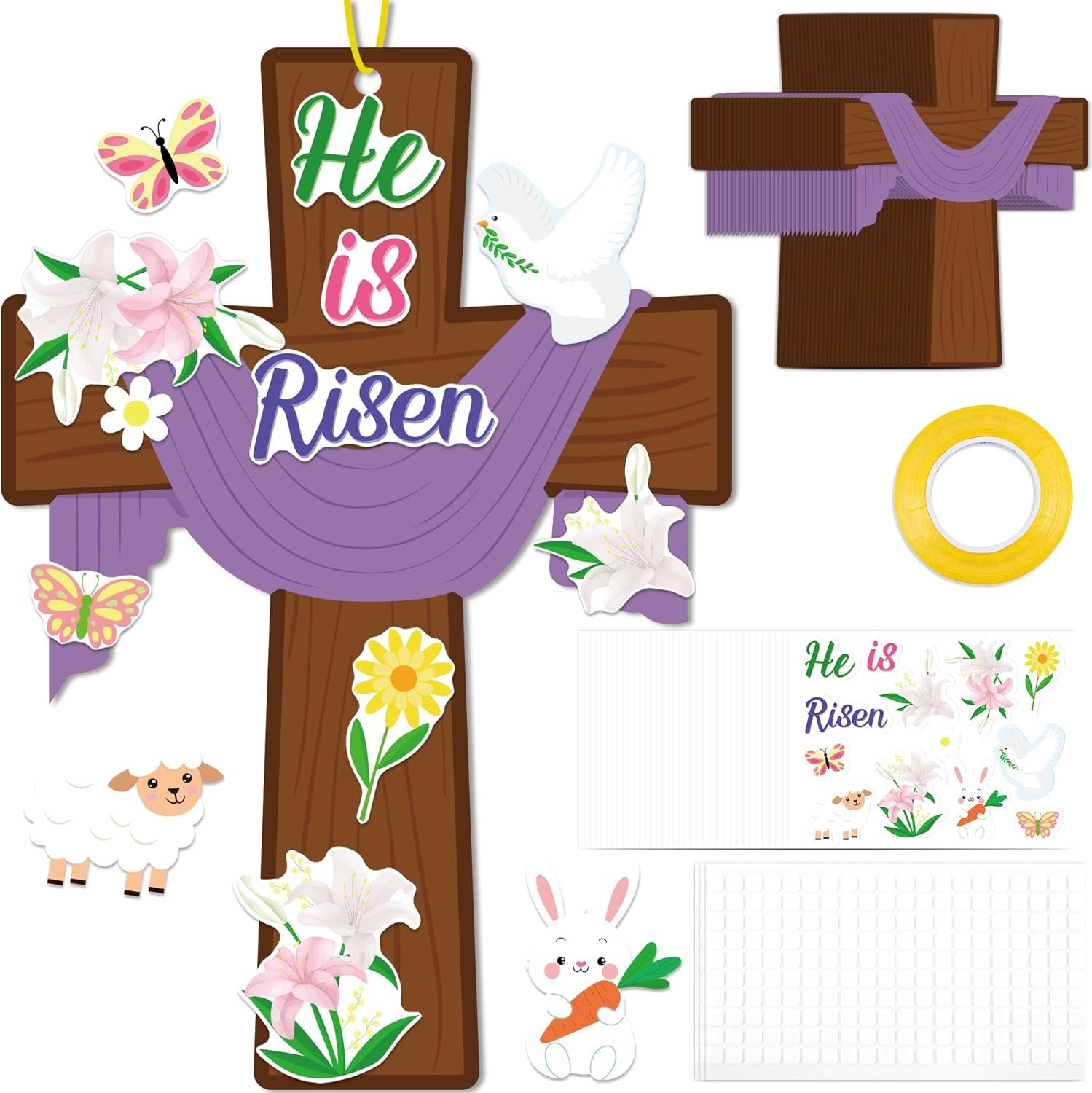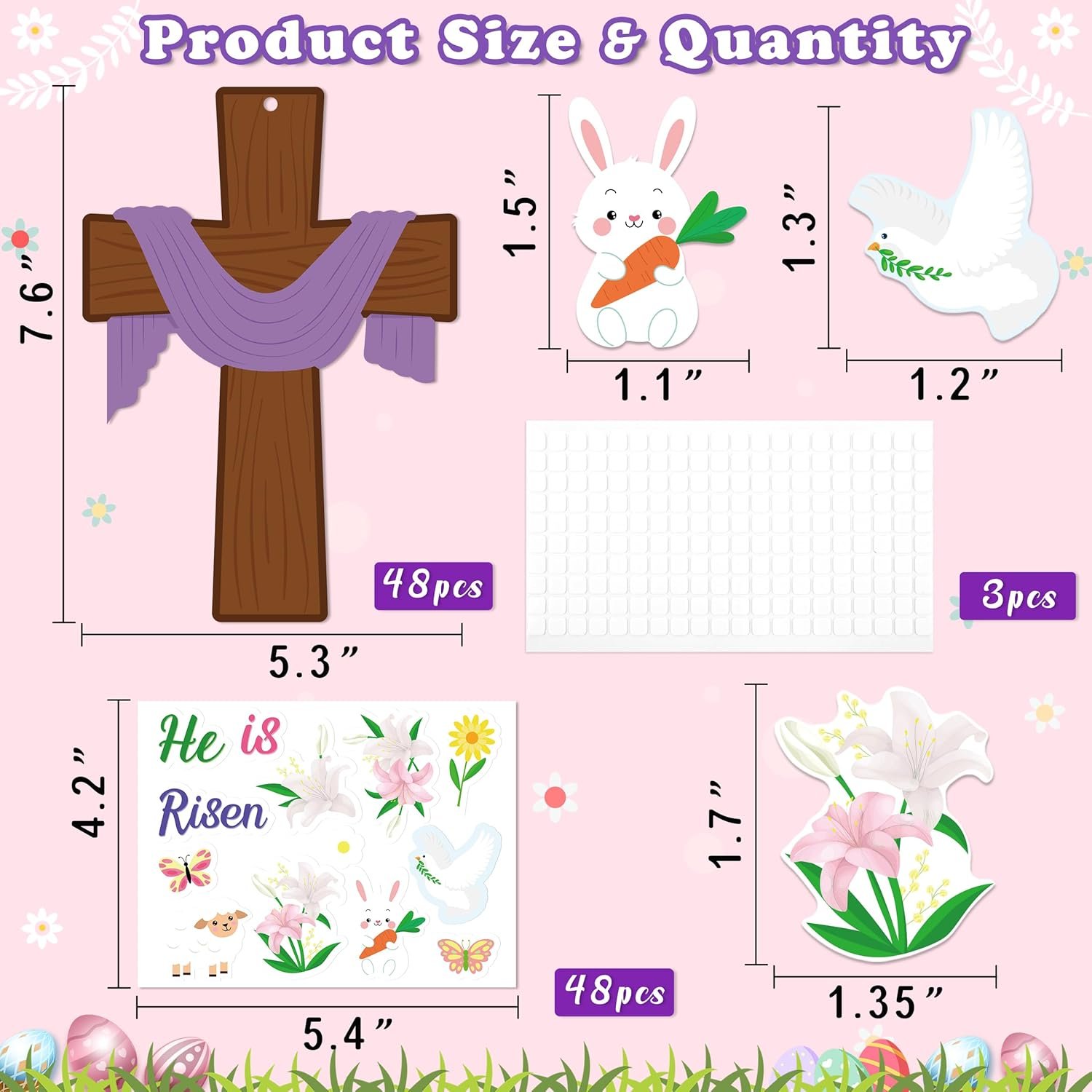 What You Will Get: This set includes 48 Easter craft kits, featuring 48 cross cards, 48 pattern stickers, one roll of ribbon, and foam stickers. These supplies are suitable for meeting the needs of your art projects or creative activities.
