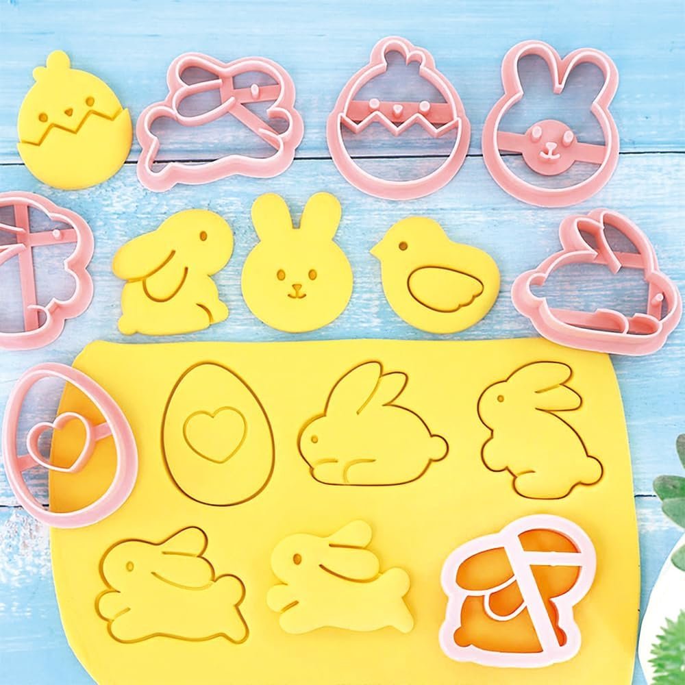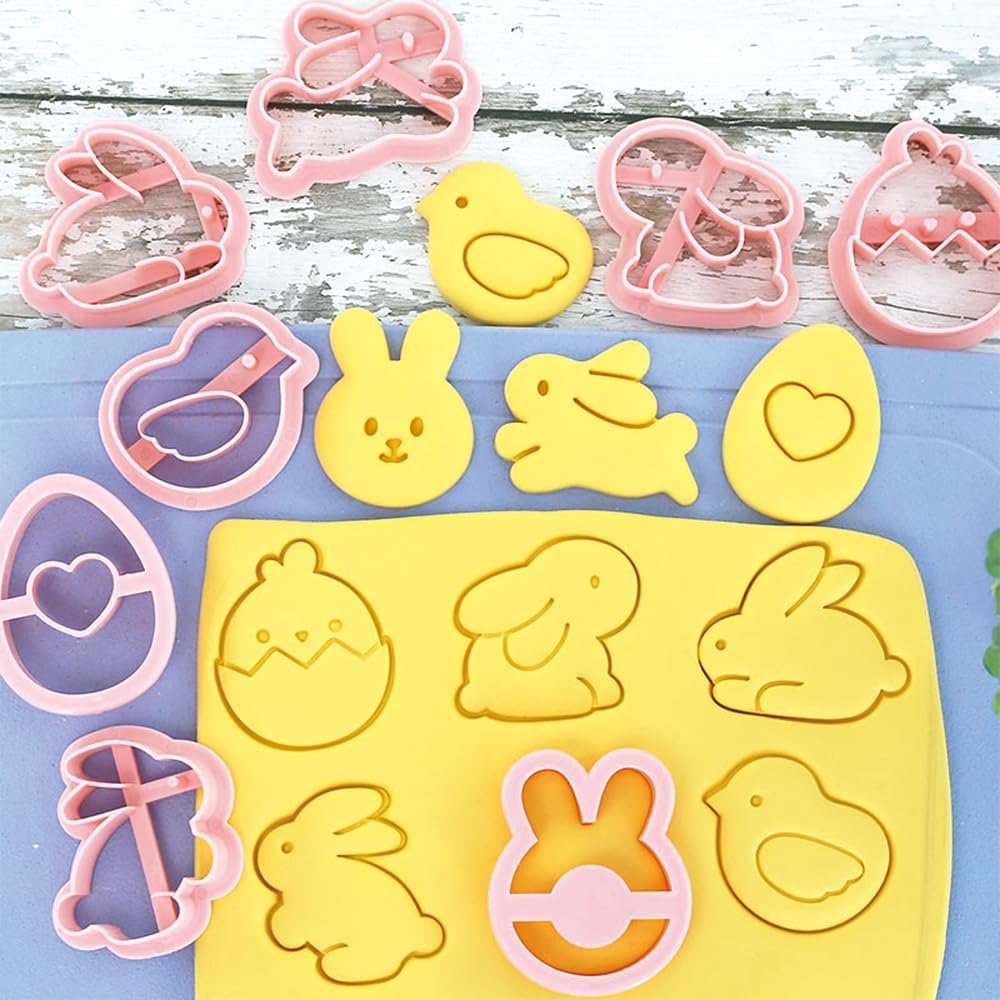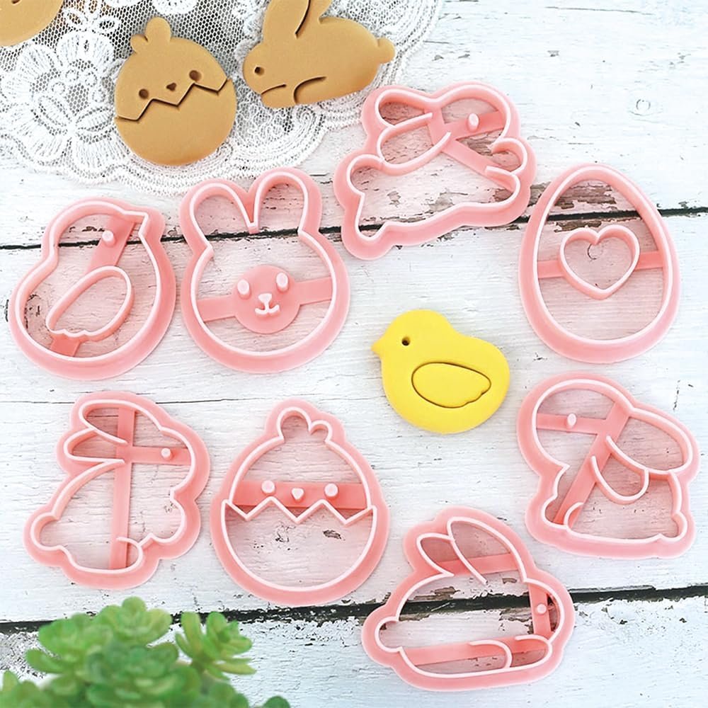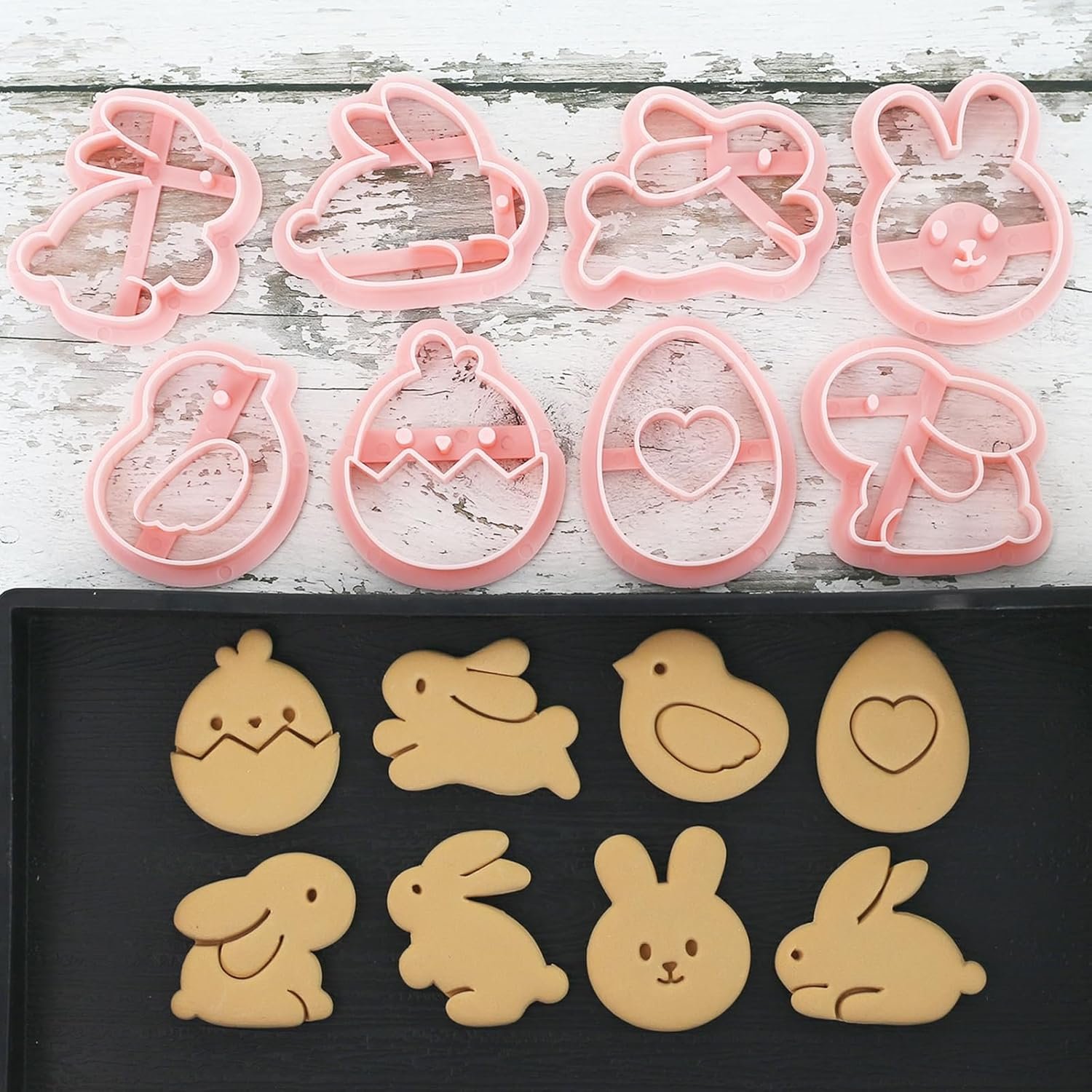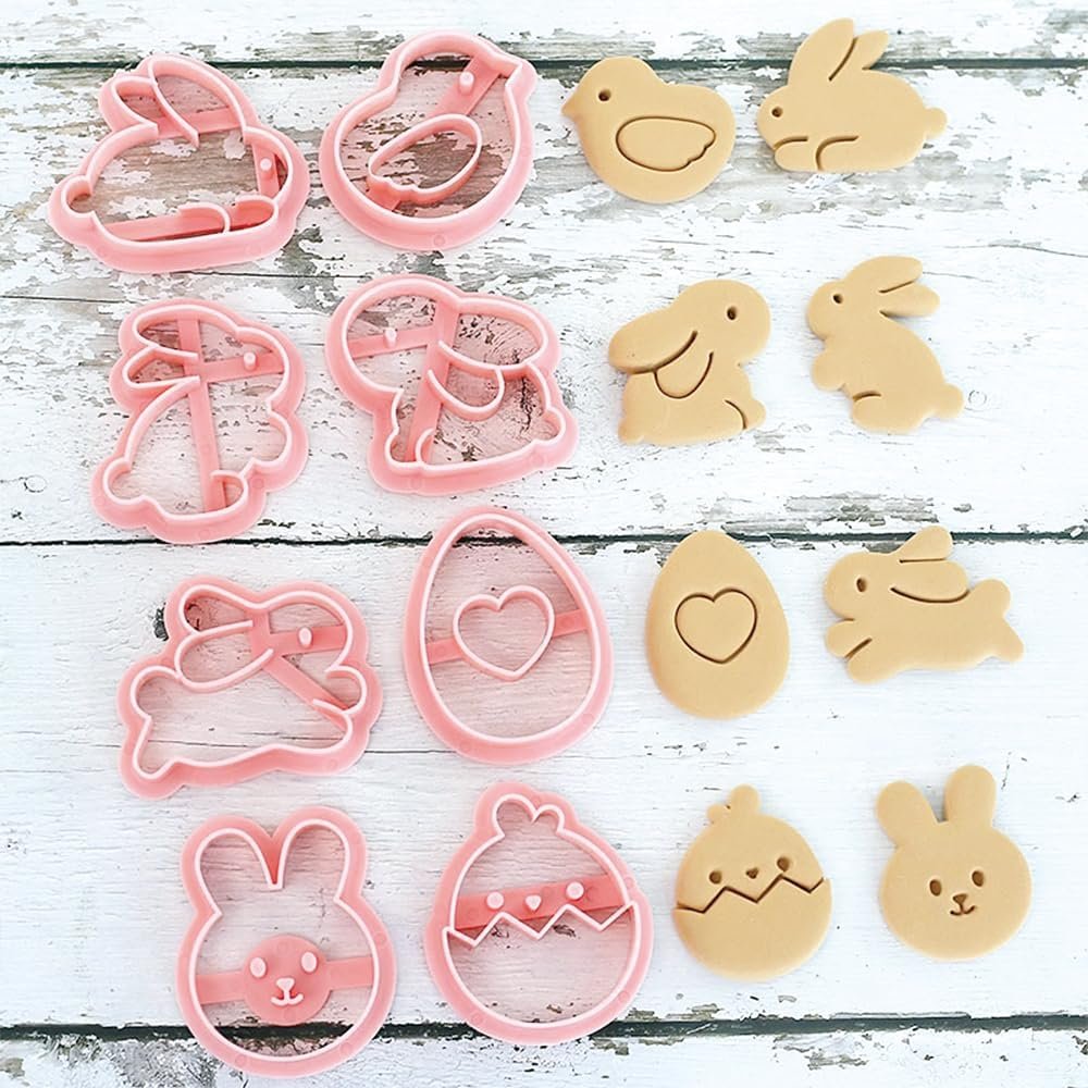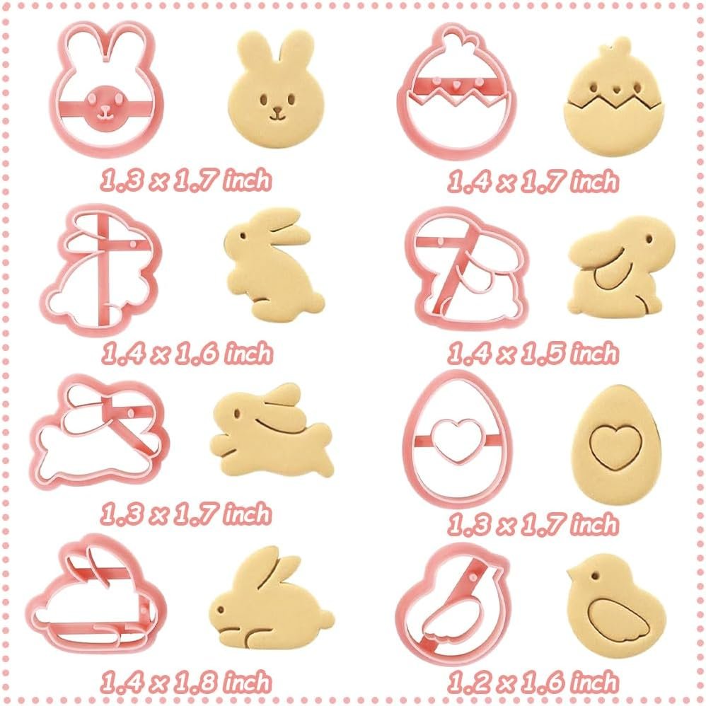 【Easter-Themed Variety】Easter cookie cutters includes eight mini easter cookie cutters featuring bunny, chick, and egg shapes, ideal for spring baking and festive party treats