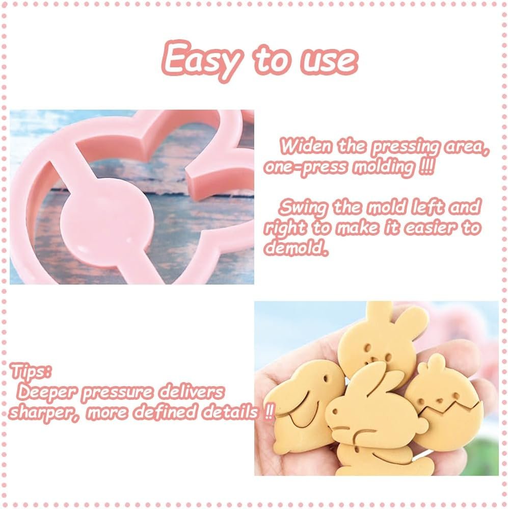 【Simple One-Touch Use】Bunny cookie cutter uses quick-press cookie stamp design makes cutting shapes easy and fun, perfect for kids and beginner bakers