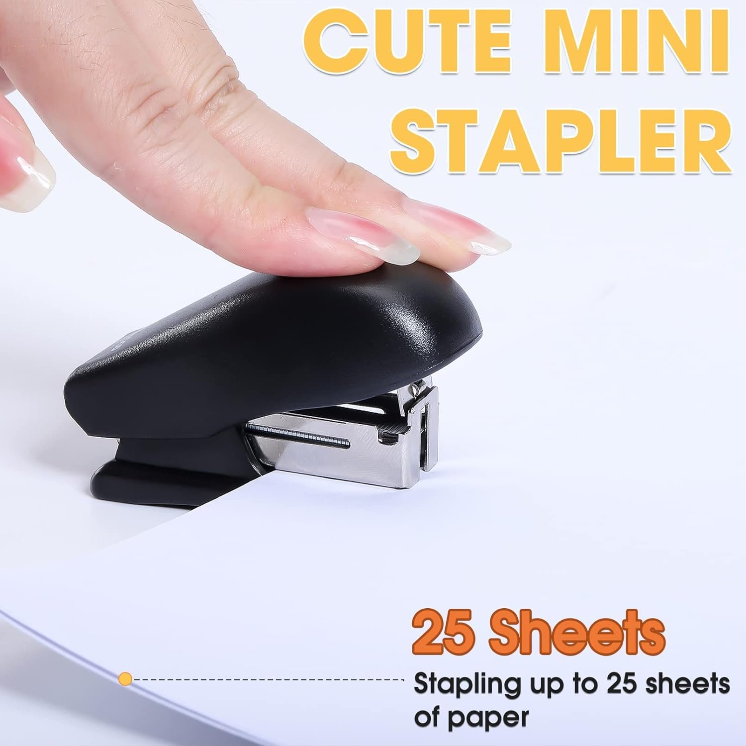 👍25 Sheet Capacity: This high-performing mini stapler securely fastens up to 25 sheets of paper without jamming. Very suitable for desktop use in the office, classroom or home and so on, which is a helpful accessory for officers, students and teachers.