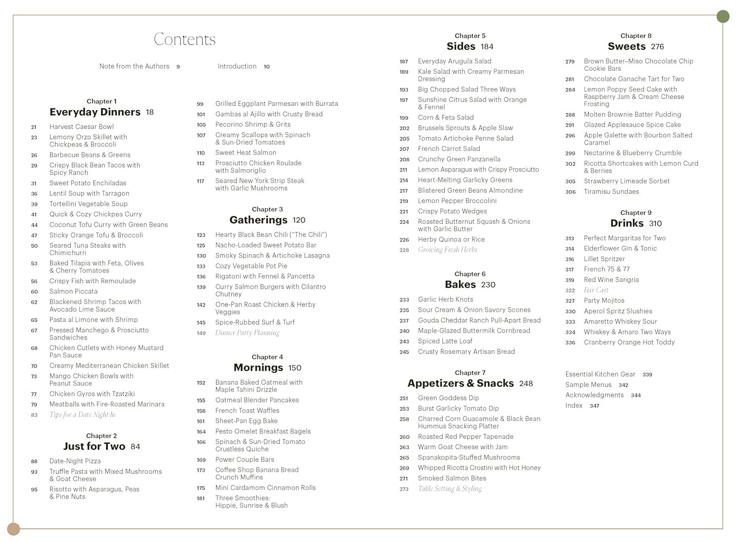 With over 100 recipes for all occasions, from everyday dinners and large gatherings to intimate dinners for two, this book is designed to make meal planning and prep a stress-free and enjoyable experience. With designated roles for each partner, each recipe is crafted to be made lovingly by two: Having friends over for a weekend dinner? Have your sous chef put out Whipped Ricotta Crostini with Hot Honey while you’re prepping the Smoky Spinach and Artichoke Lasagna. Craving a sweet pick-me-up at the end of a long week? Prep the dry ingredients while your partner preps the wet ingredients, and chow down on hard-earned Brown Butter Miso Chocolate Chip Cookie Bars together.