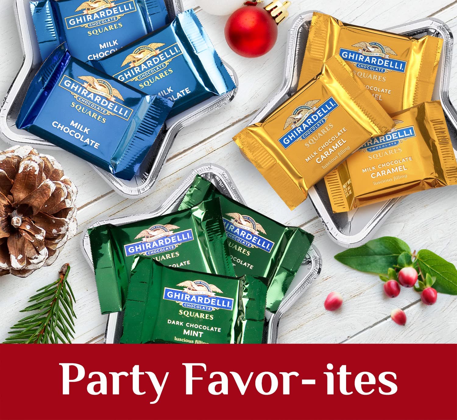 Make their eyes sparkle with a selection of Ghirardelli’s most recognized candy square jewels – three each Milk Chocolate Squares, Milk Chocolate Caramel Filled Squares, and Dark Chocolate Mint Filled Squares. These treats are definitely a one-of-a-kind confectionery delight, individually wrapped and ready to be shared with friends, family, or savored just by you. We won’t tell.