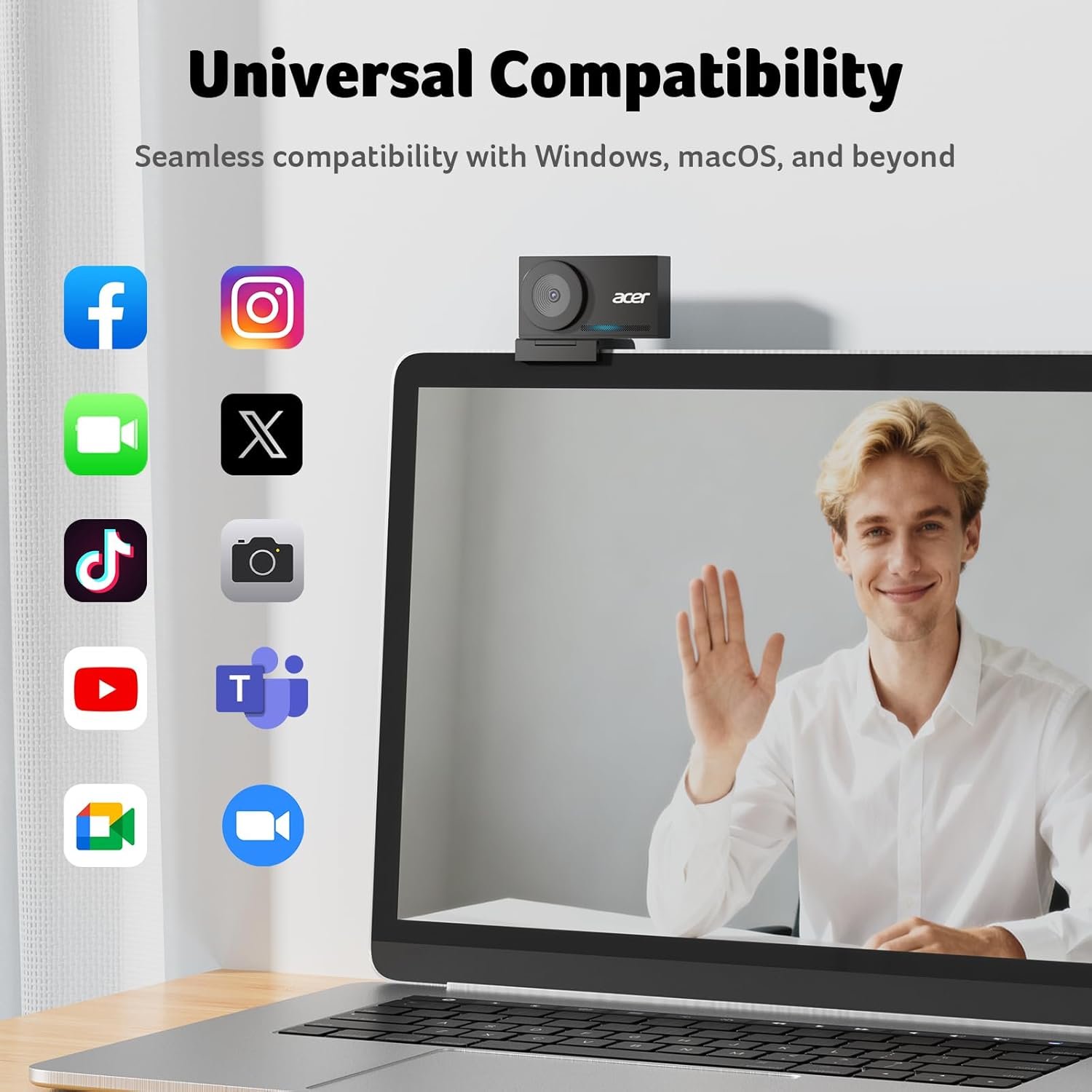 [4K Premium Image Quality] With UHD 4K resolution and a large Sony 1/2″ CMOS sensor, this acer webcam for pc delivers balanced, true-to-life visuals with HDR, exceptional low-light performance, and superior light capture for clearer, brighter, detail-rich,idea for streamers, gamers, and creators, this 4K webcame delivers an exceptional experience for you and your audience.