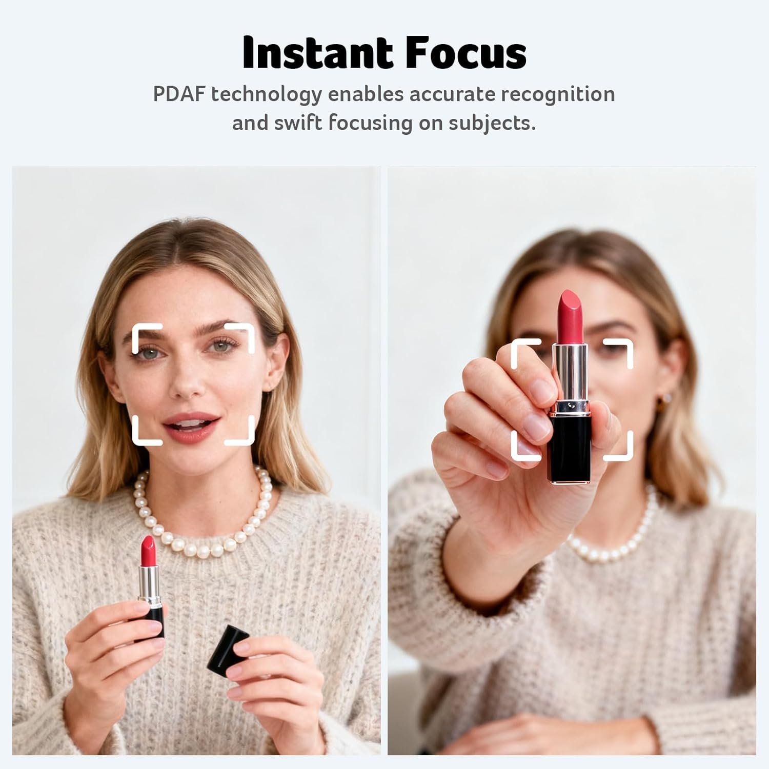 [PDAF Autofocus] Keep your audience engaged with advanced Phase Detection Autofocus (PDAF), delivering faster, more accurate, and more stable focusing than standard autofocus—ensuring crisp, clear 4K video without blurriness in any scene.