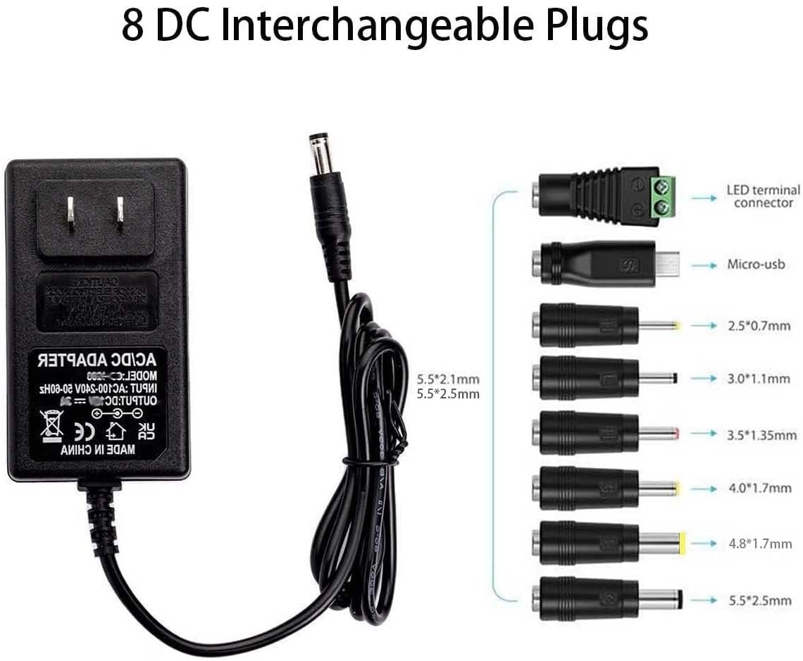 Package Include: 1 x AC DC Adapter + 8 Connector Tips