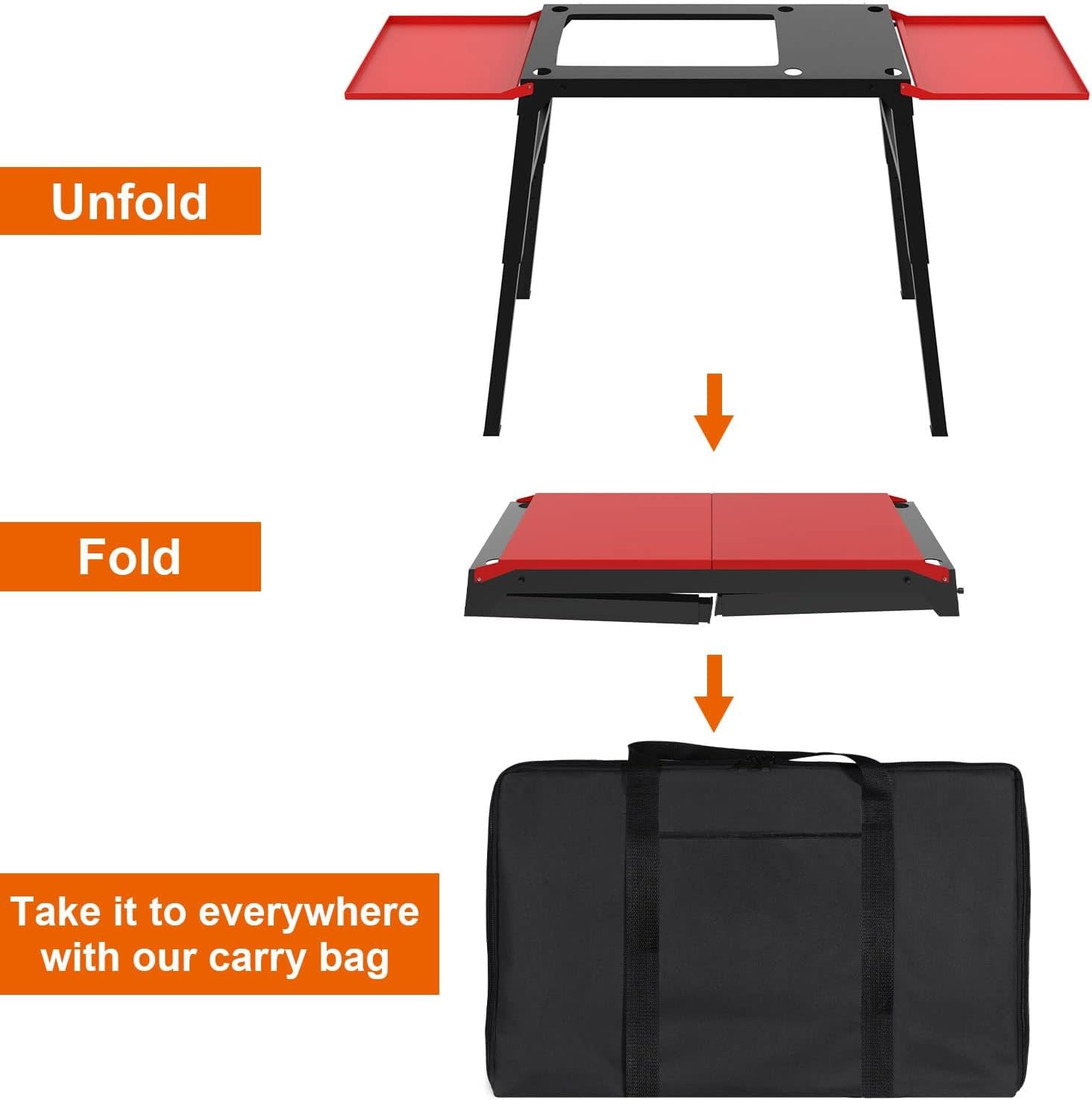 【Features】 Extend the cooking space.Open its two side shelf, you will have a big cooking surface to handle food and place utensils conveniently. Save space. You can fold it completely when it in not use. Easy to move. Take it to everywhere with our carry bag as you like.