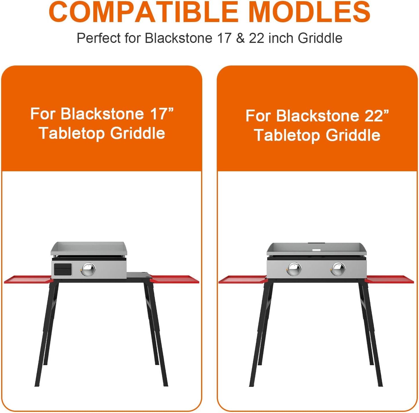 【Customed Design】The foldable griddle stand is designed for Blackstone 17 ” or 22 ” Table Top Griddle.