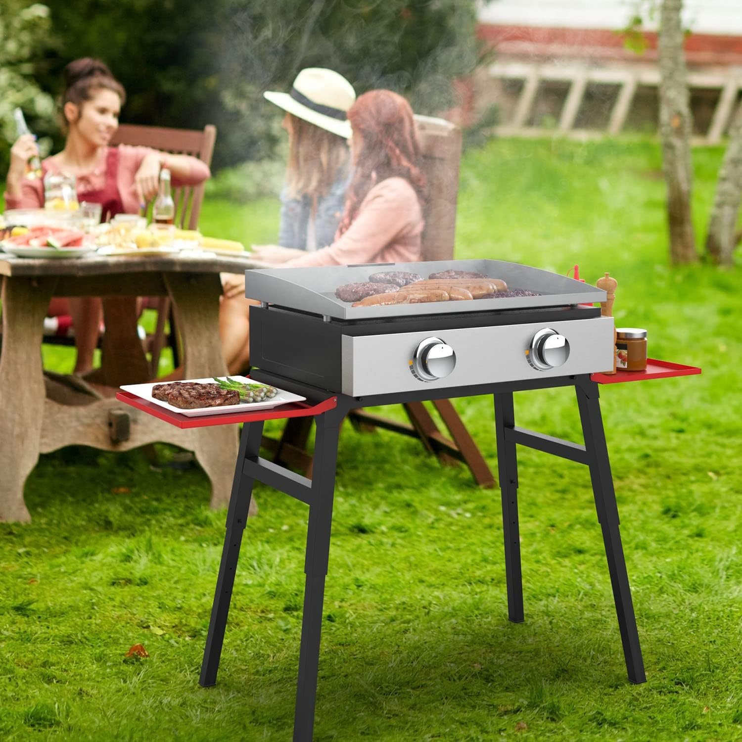 【BBQ Must Have】The Outdoor Griddle Stand Shelf is perfect for indoor and outside use, and great for camp,adventure and Tailgating.
