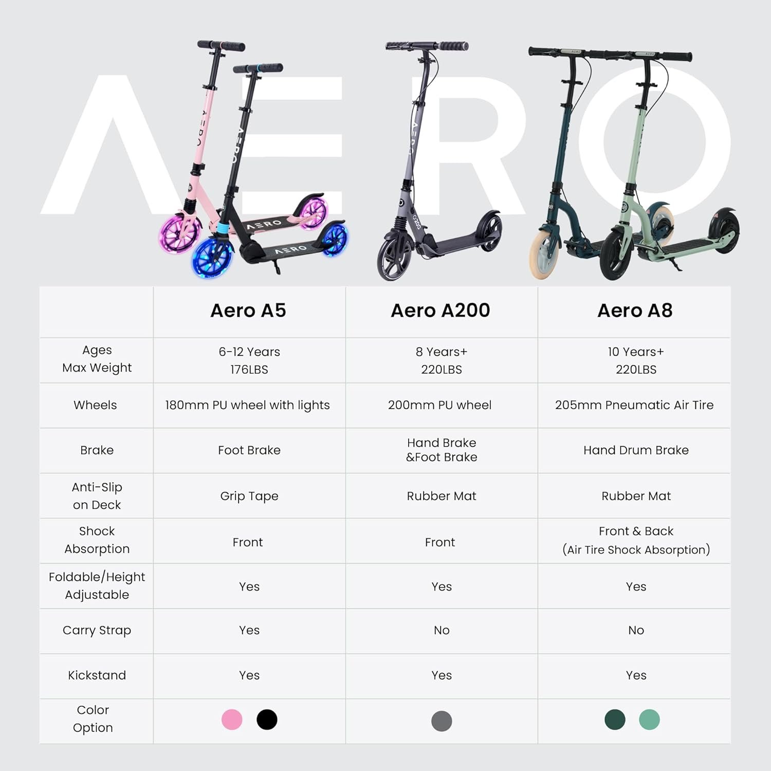 DESIGNED FOR KIDS, TEENS AND ADULTS: Aero A200 NON-ELECTRIC kick scooter is specially designed for big kids 8-12, teens, and adults. It is perfect for both recreational sports and short-distance commuting.