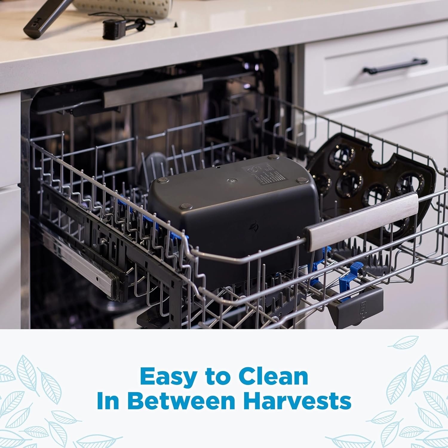 NEW FEATURES: In addition to its trendy aesthetics, the targeted grow light means more light on your plants and less on the surrounding area, plus the Harvest 2.0 features a one-button control nutrient reminder, and a dark grow deck to help prevent algae growth in the reservoir