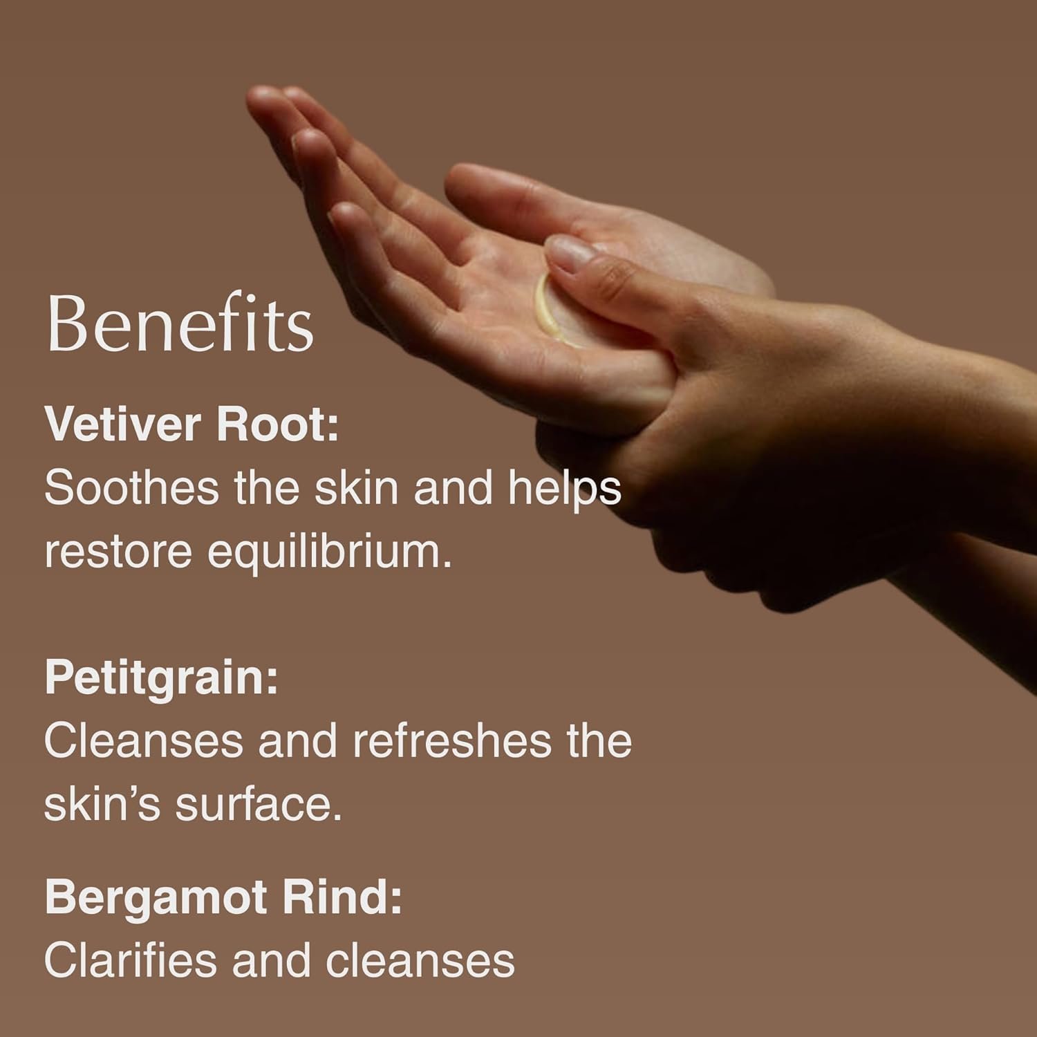 Enriched with Vetiver Root to calm and balance, Petitgrain and Bergamot Rind to purify, and Finely Milled Pumice to gently exfoliate. The wash cleanses and refreshes without stripping the skin.