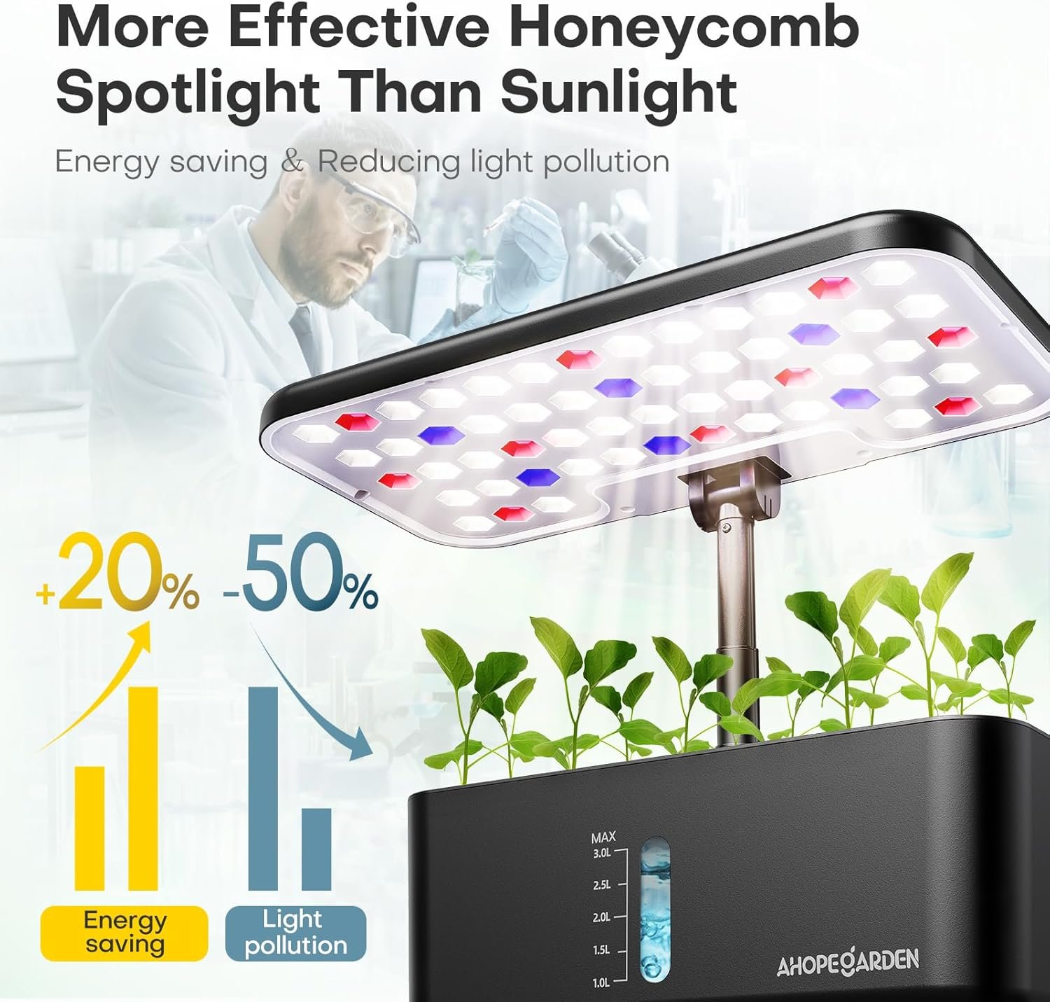 High planting efficiency: Start an indoor herb garden with the Ahopegarden hydroponic growing system, which includes a water reservoir, an overhead LED grow light, and a circulation system that keeps the water fresh. The hydroponic setup and lighting systems allow plants to grow up to faster and healthier in controlled conditions. Simply add plant seeds, water, and nutrients to the reservoir and watch the plants grow