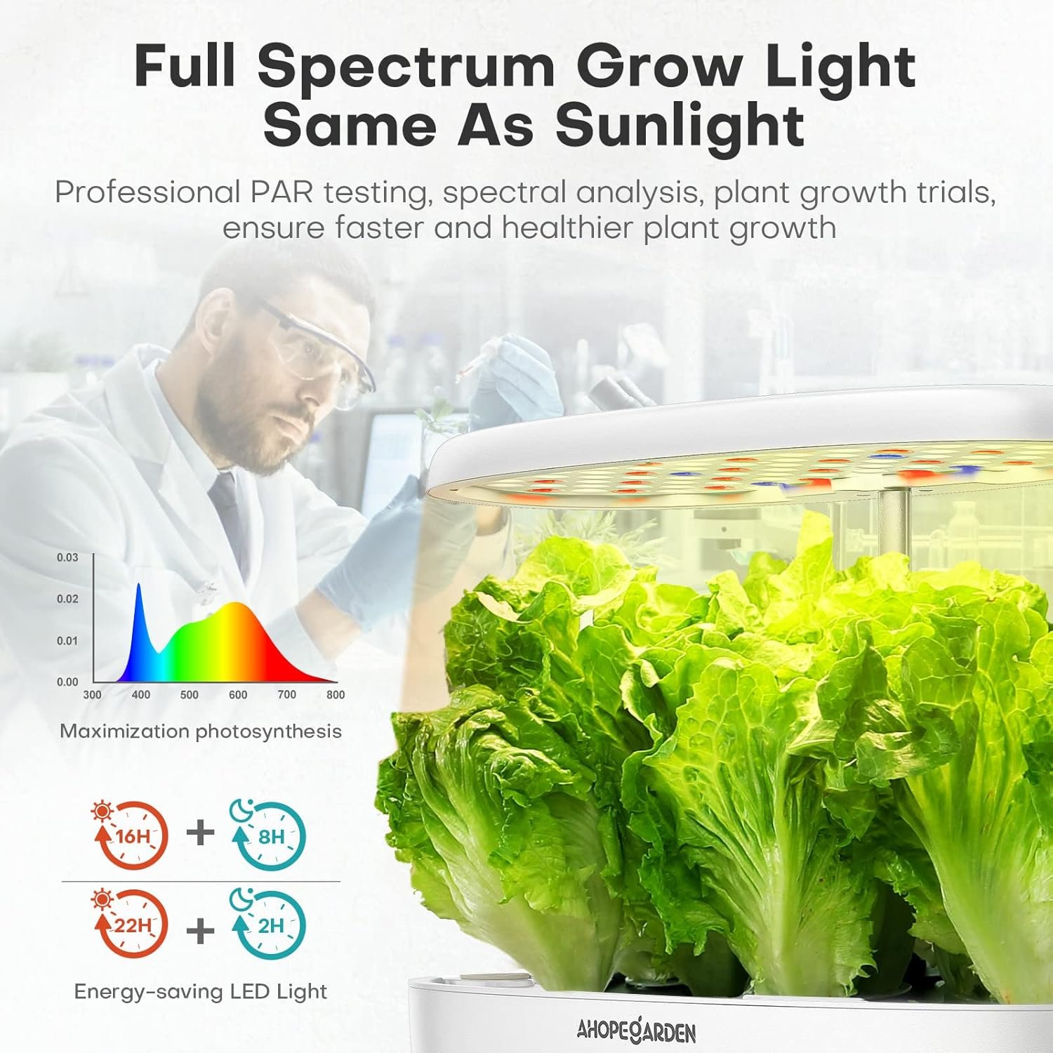 Innovative Grow Light Modes: Our herb garden kit indoor features unique veggie and fruit&flower modes tailored to different types of plants. Full-spectrum lamps simulate natural sunlight and promote photosynthesis in any weather conditions. The LED grow light of this indoor herb growing kit is set to 2 automatic 16-Hour-On or 22-Hour-On timer, especially 22-Hour-On cycle timer is very conducive to the rapid growth, higer sugar content and higer yield in fruits.