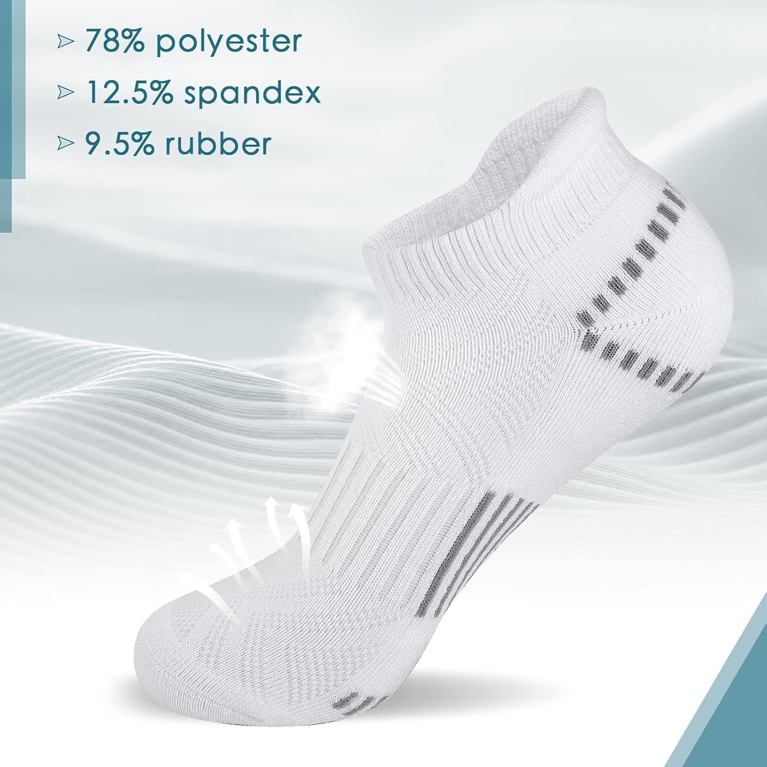 Features: Comfortable elastic closure + Mesh top for breathability + Max sock cushioned + Great arch support + Reinforced toe + Striped style + ankle length