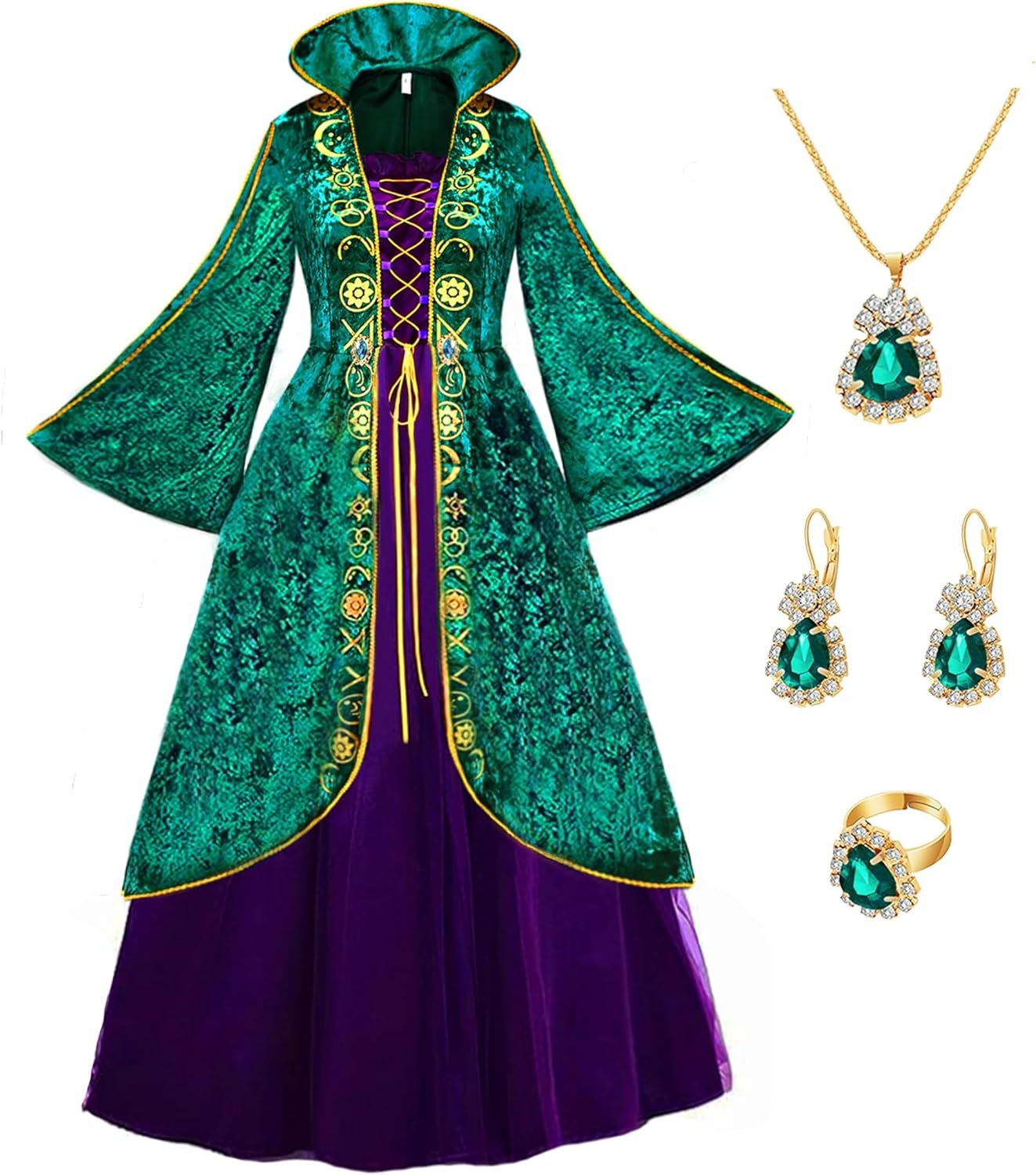 Akokvlar Women Medieval Costume Dress Halloween Witch Cosplay Green Robe